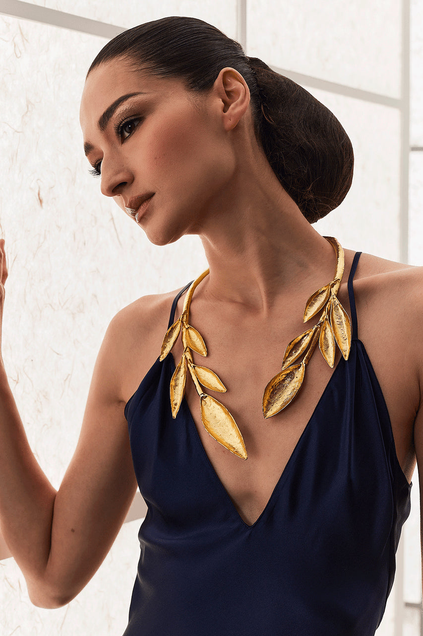Details & Care For Gold Plated Leaf Long Choker Necklace
