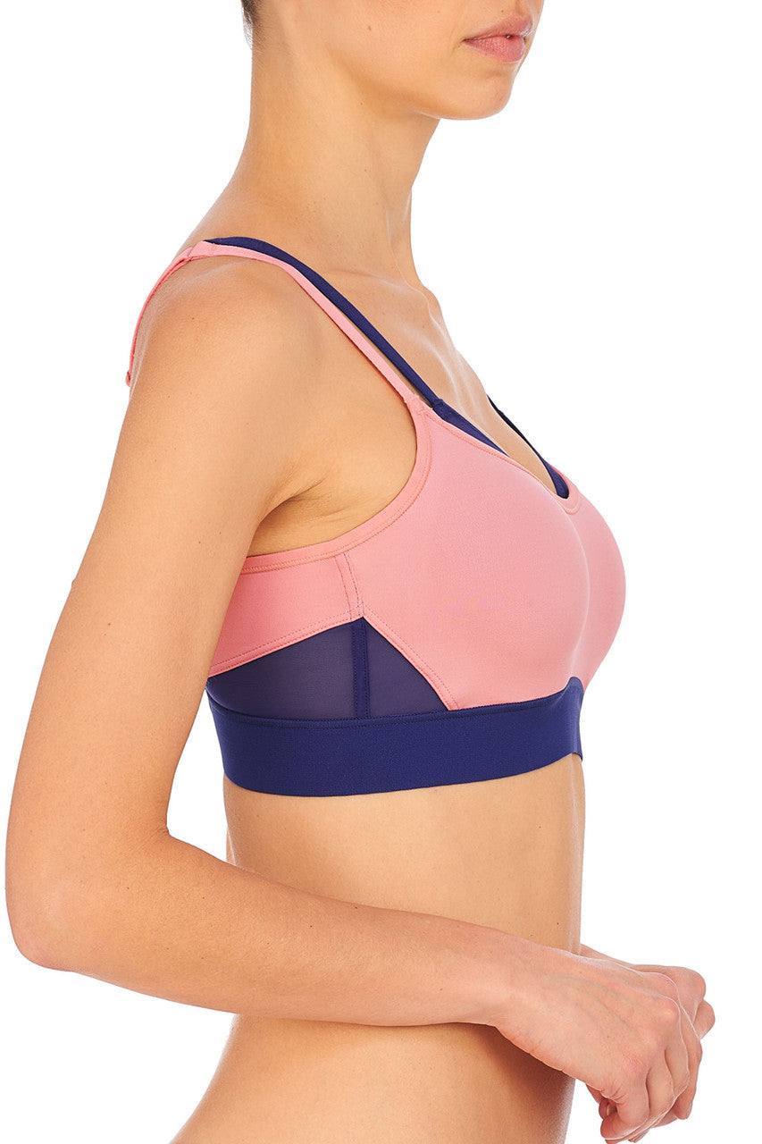 Get the look of layering without the bulk. A fashion forward, high impact, modern coverage sport bra designed to give the support of 2 bras in 1.