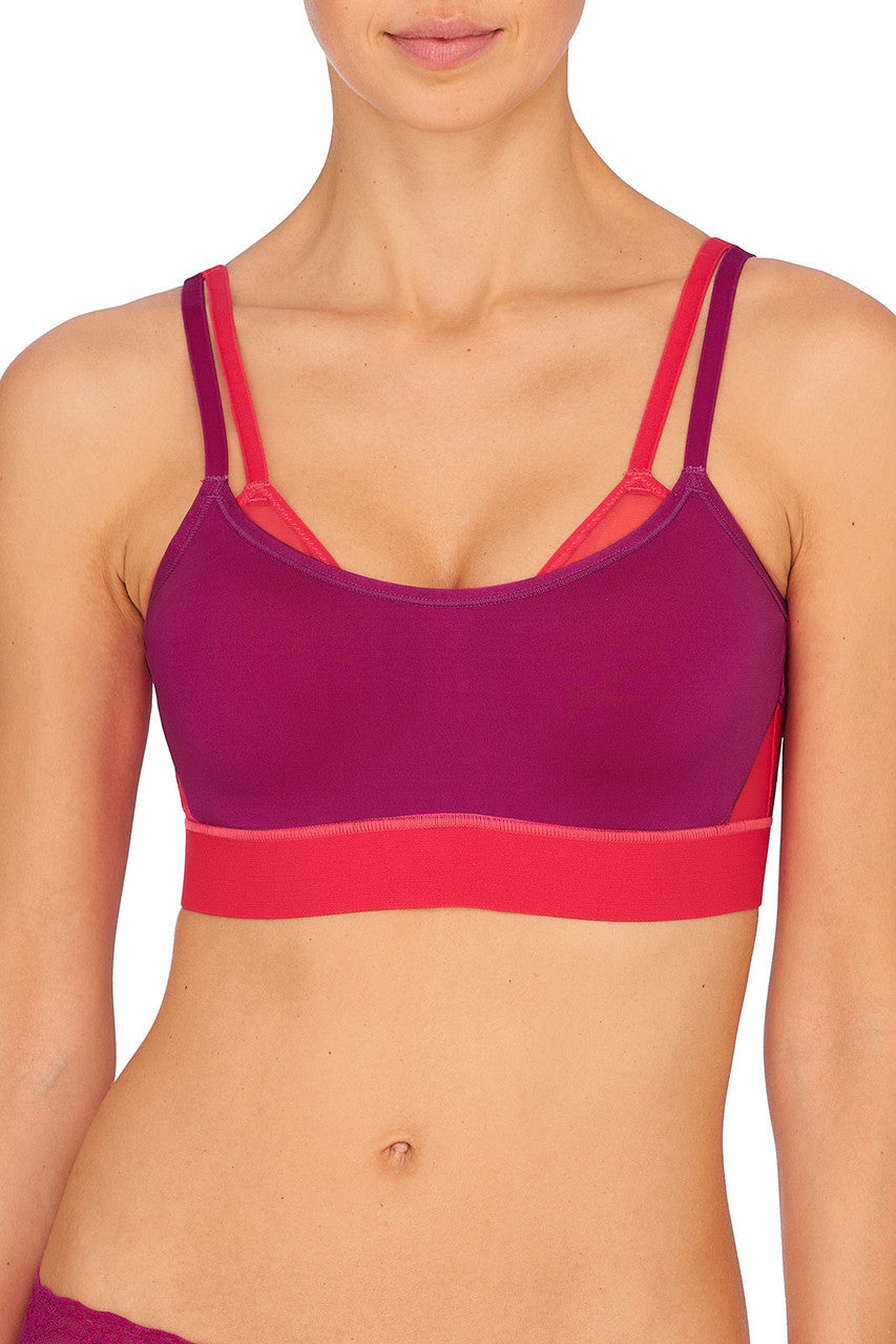 Get the look of layering without the bulk. A fashion forward, high impact, modern coverage sport bra designed to give the support of 2 bras in 1.
