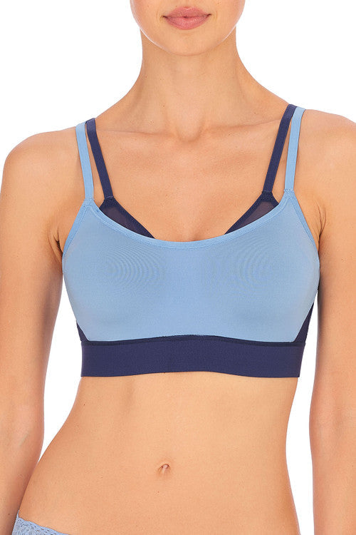 Get the look of layering without the bulk. A fashion forward, high impact, modern coverage sport bra designed to give the support of 2 bras in 1.