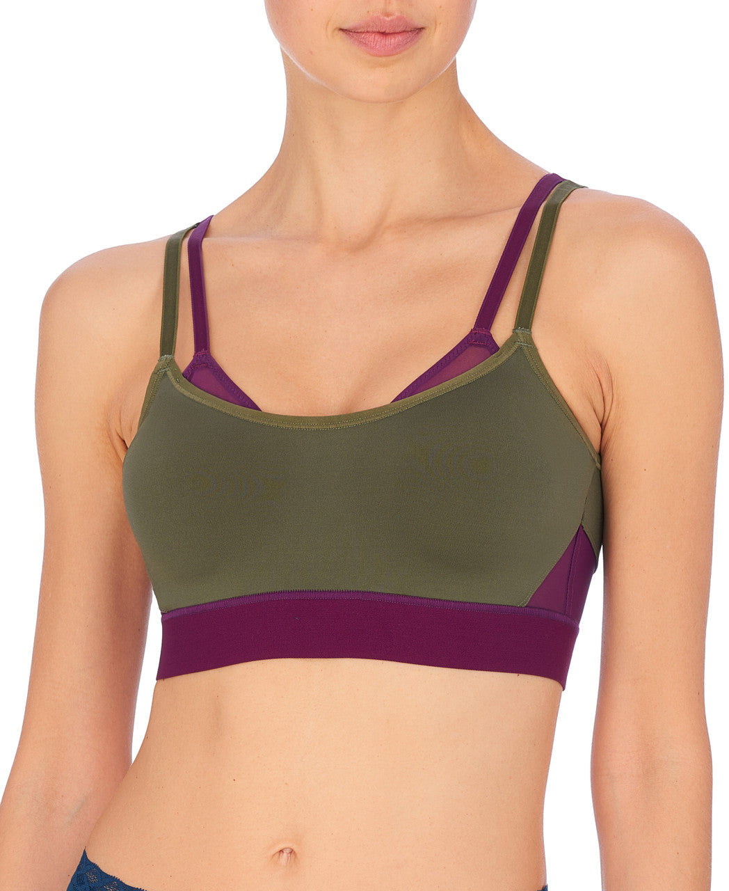 Get the look of layering without the bulk. A fashion forward, high impact, modern coverage sport bra designed to give the support of 2 bras in 1.