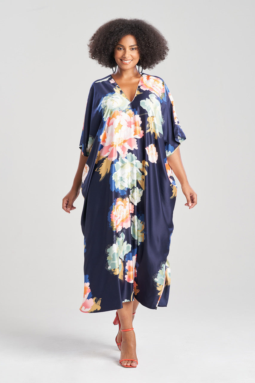 • Our relaxed and flowy windowpane caftan with a V-neck neckline