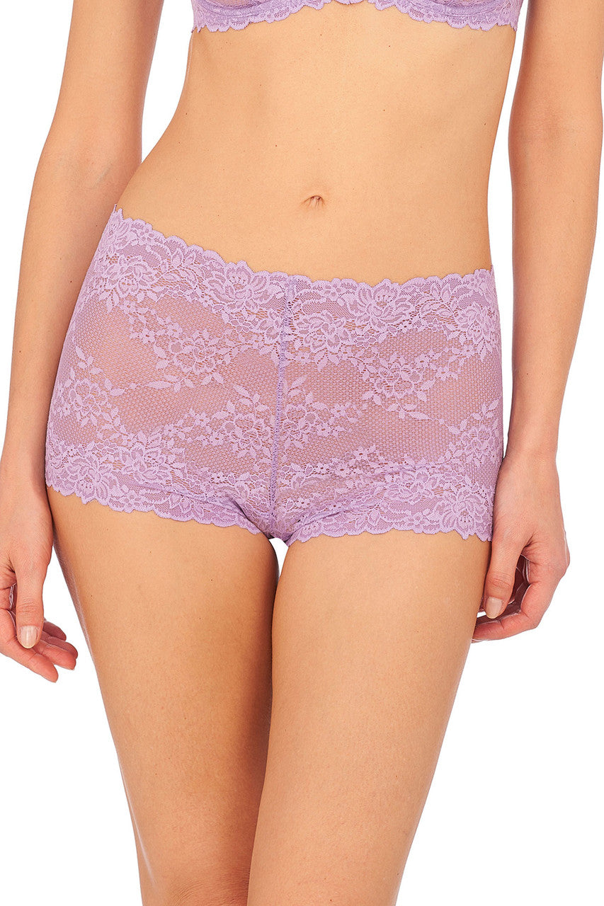 A contemporary twist on your everyday lingerie. Delicate and feminine boyshort is crafted with a beautiful stretch lace for all day comfort.