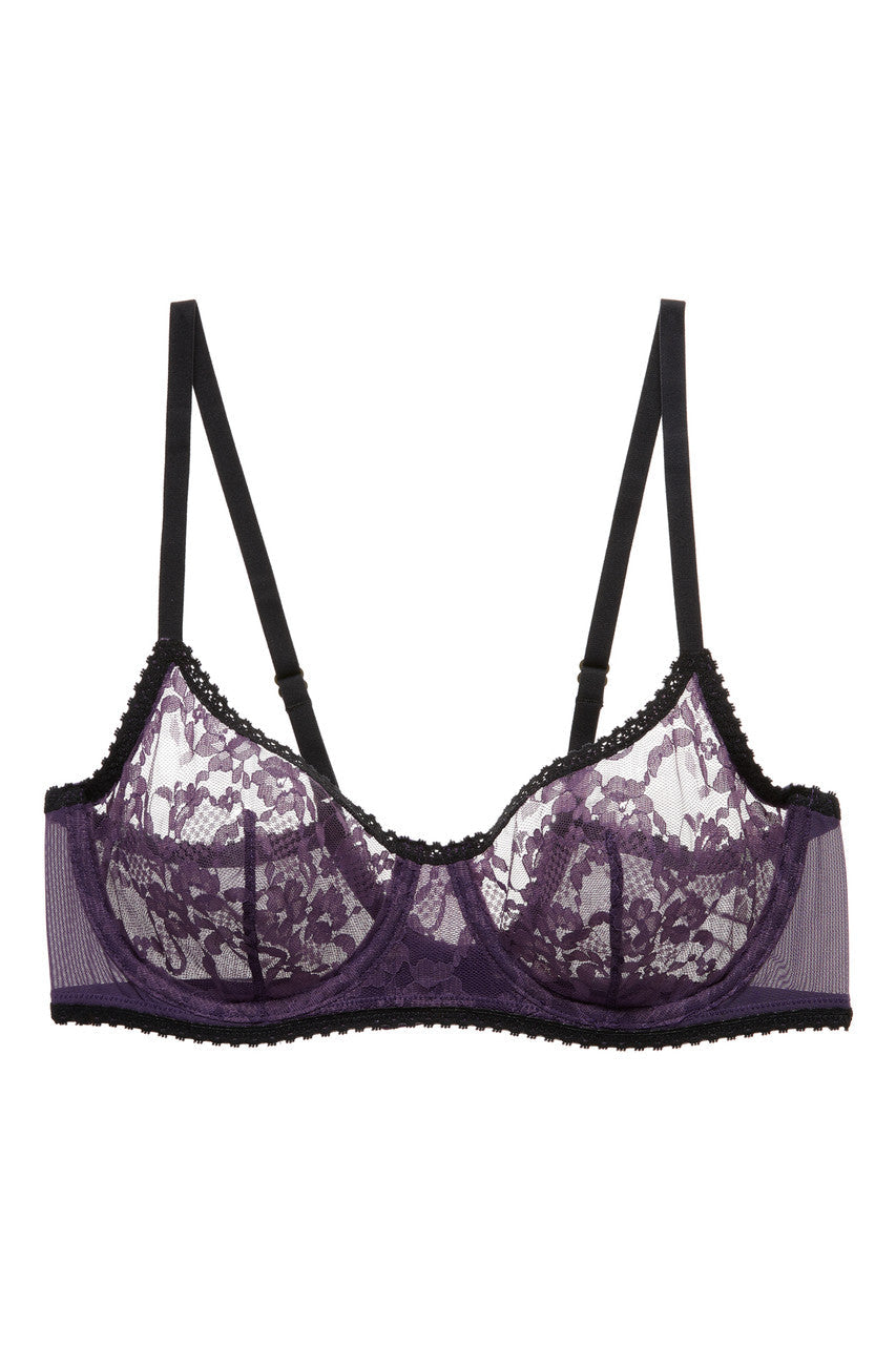 Modern balconette shape paired with classic lace and breathable mesh makes for a supportive unlined silhouette with great projection.