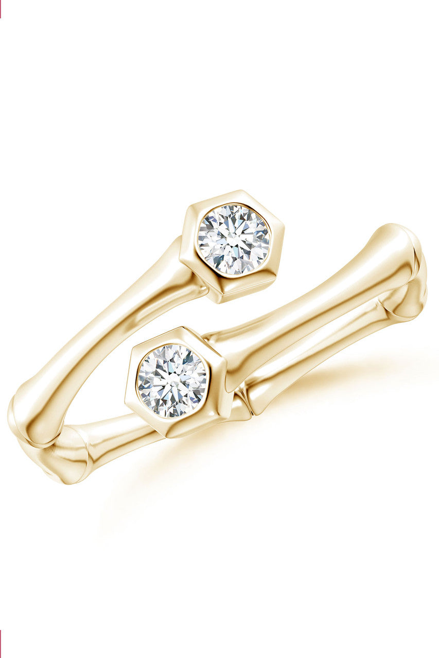 Details & Care For Indochine 14k Black & White Diamond Bamboo Bypass Ring