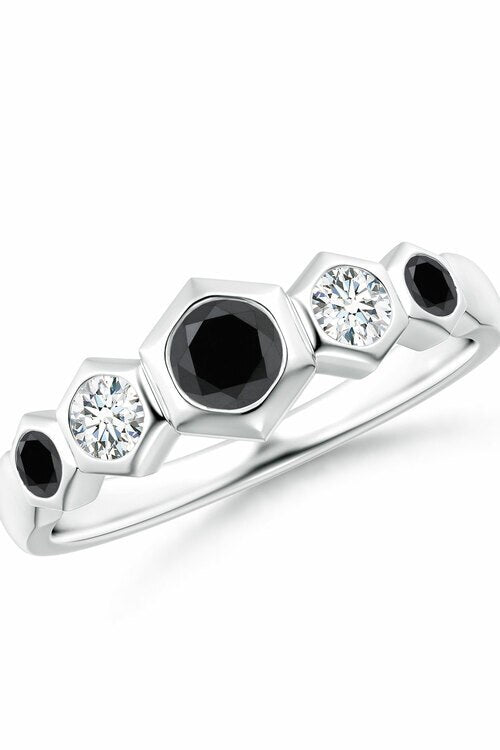 Indochine 14k Black & White Diamond Tapering Hexagon Stacking Ring
