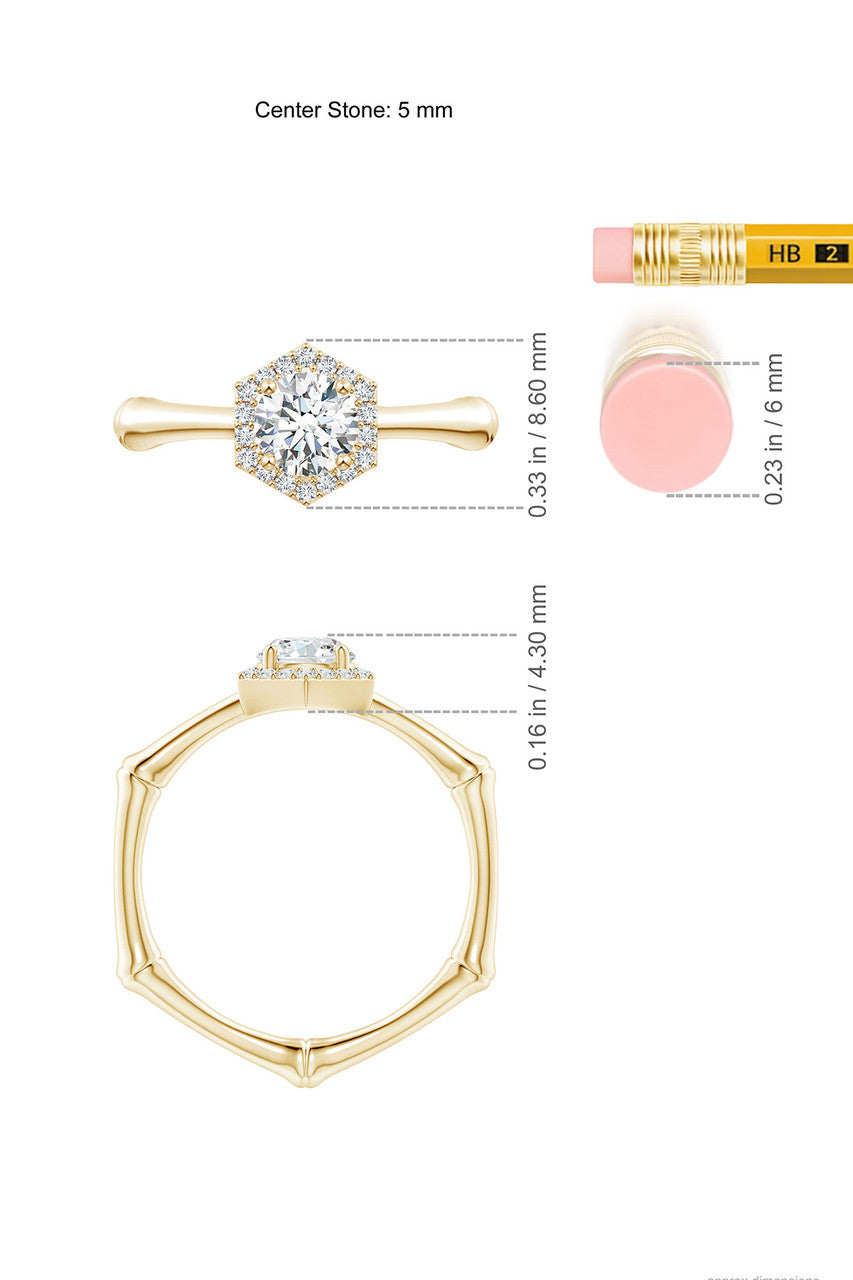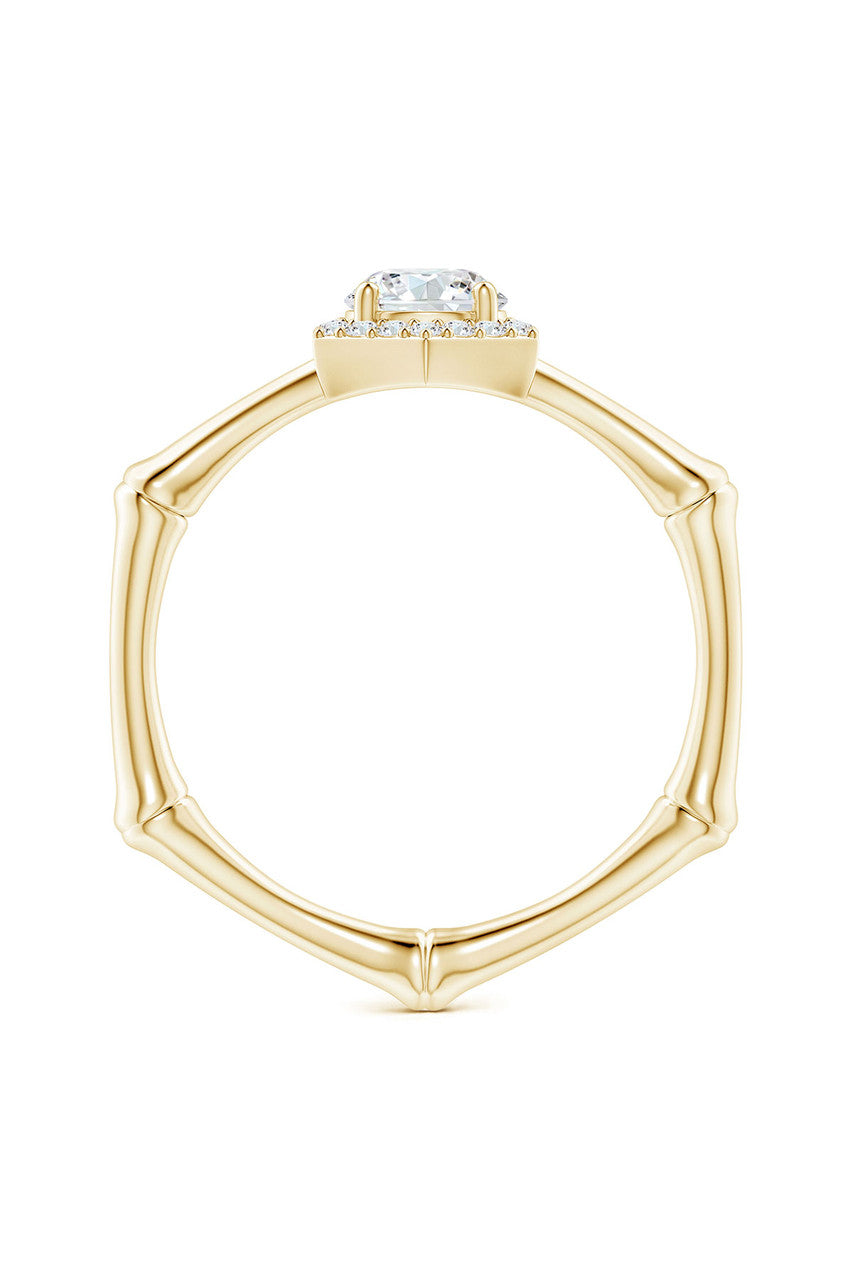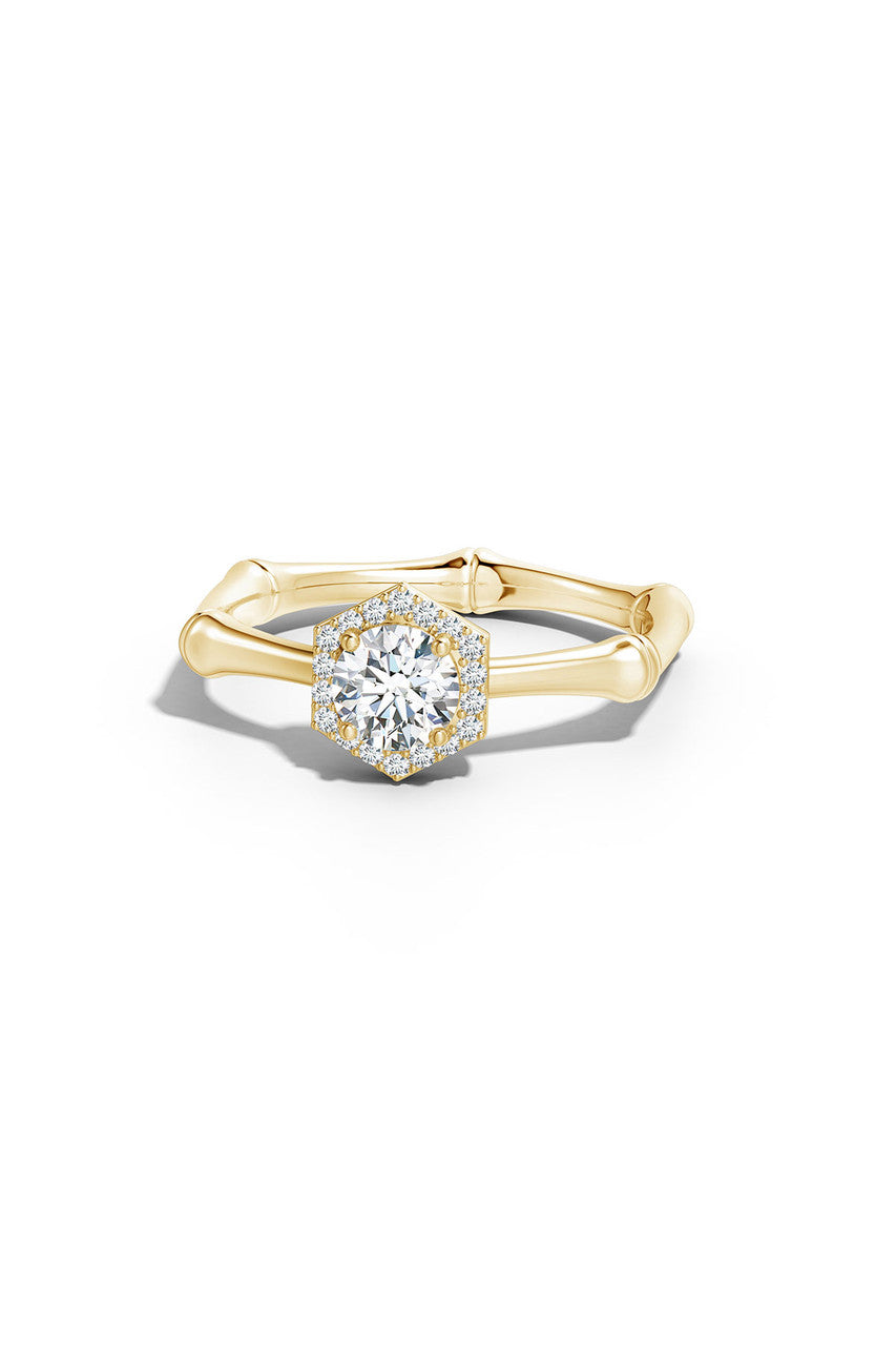 Details & Care For Indochine 14k Hexagon Diamond Pave Halo Bamboo Ring