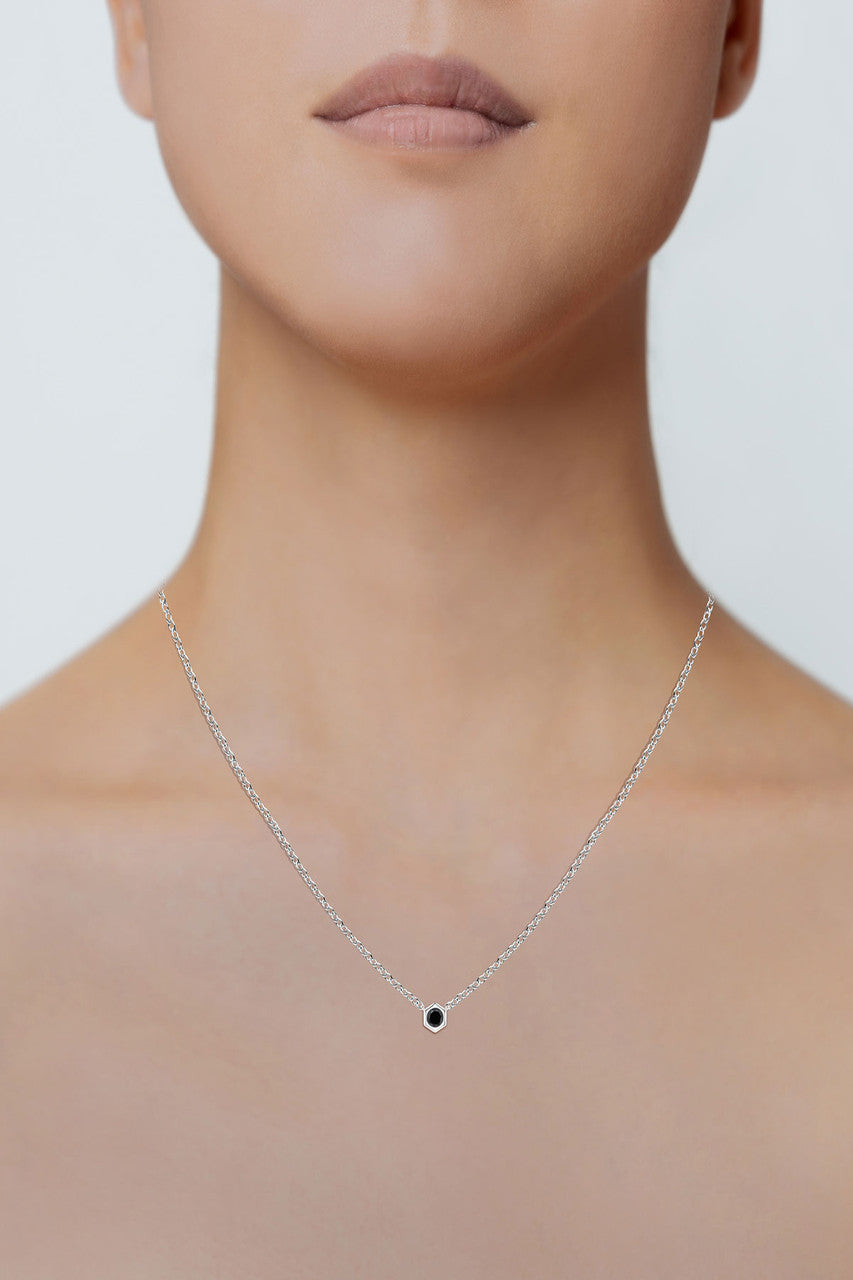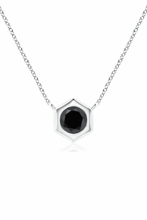 Details & Care For Indochine 14k Hexagon Frame Black Diamond Solitaire Necklace
