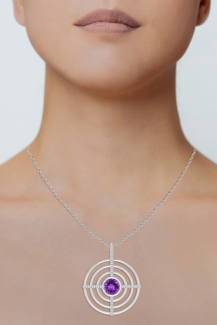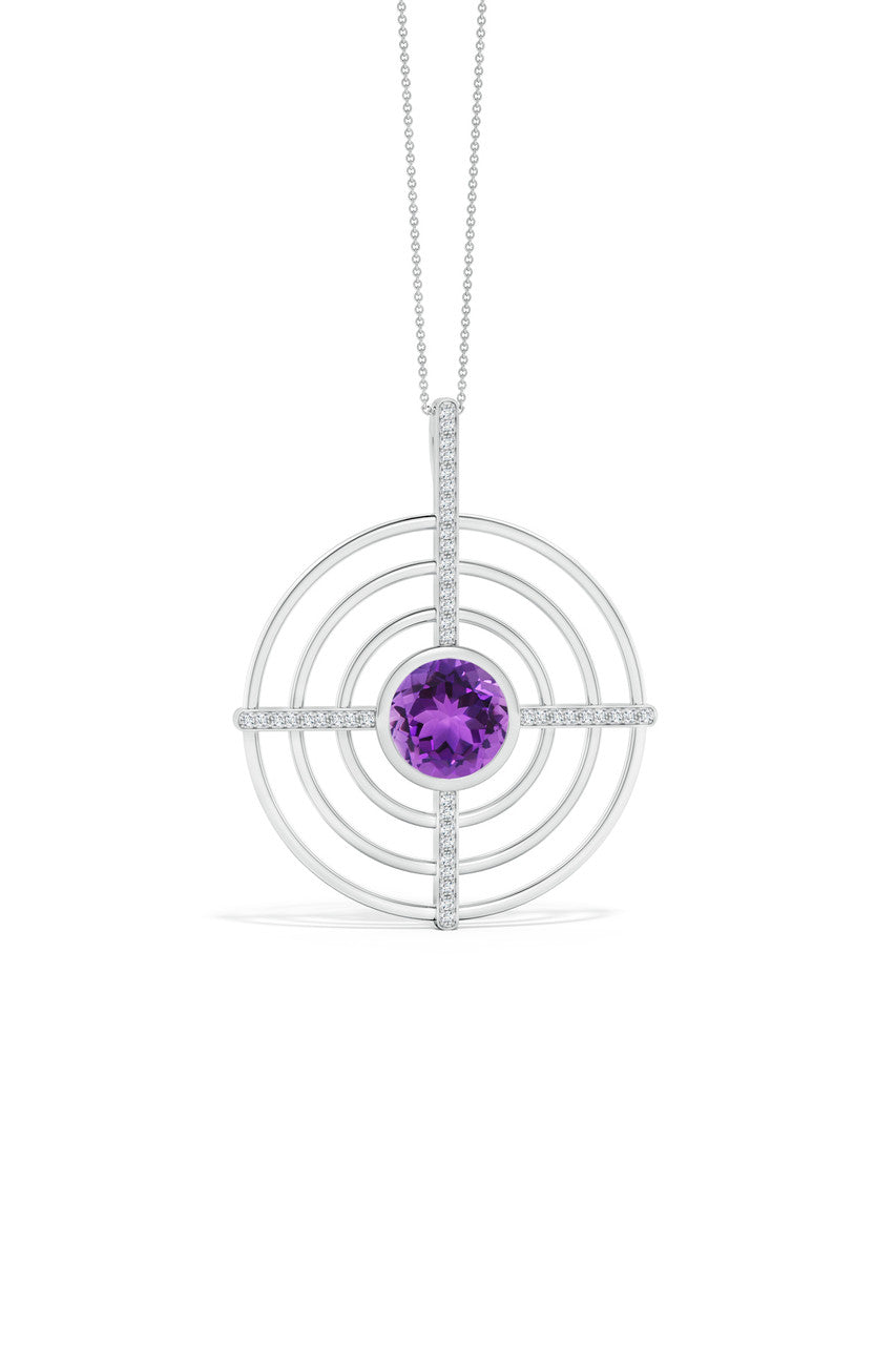 Infinity Concentric Circle 14K Gold and Amethyst Pendant Necklace
