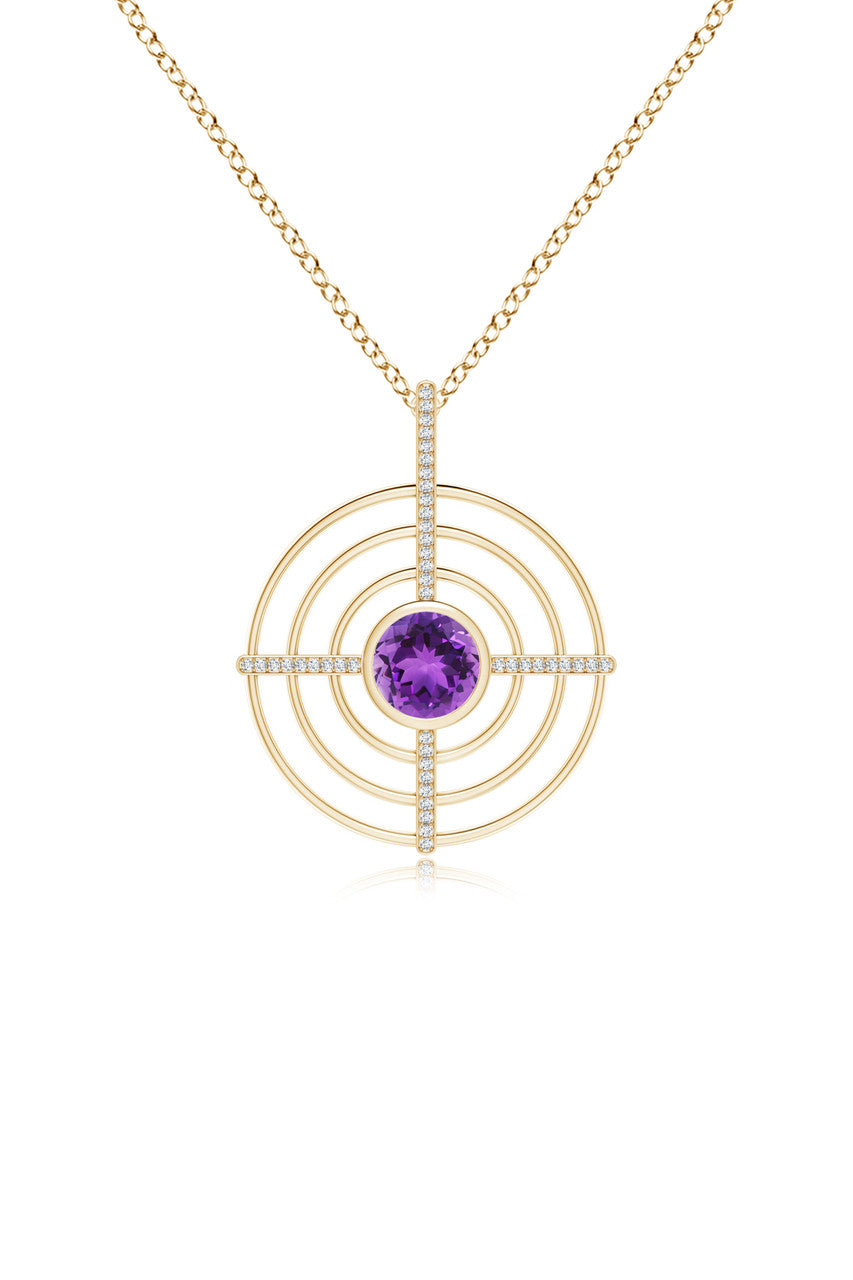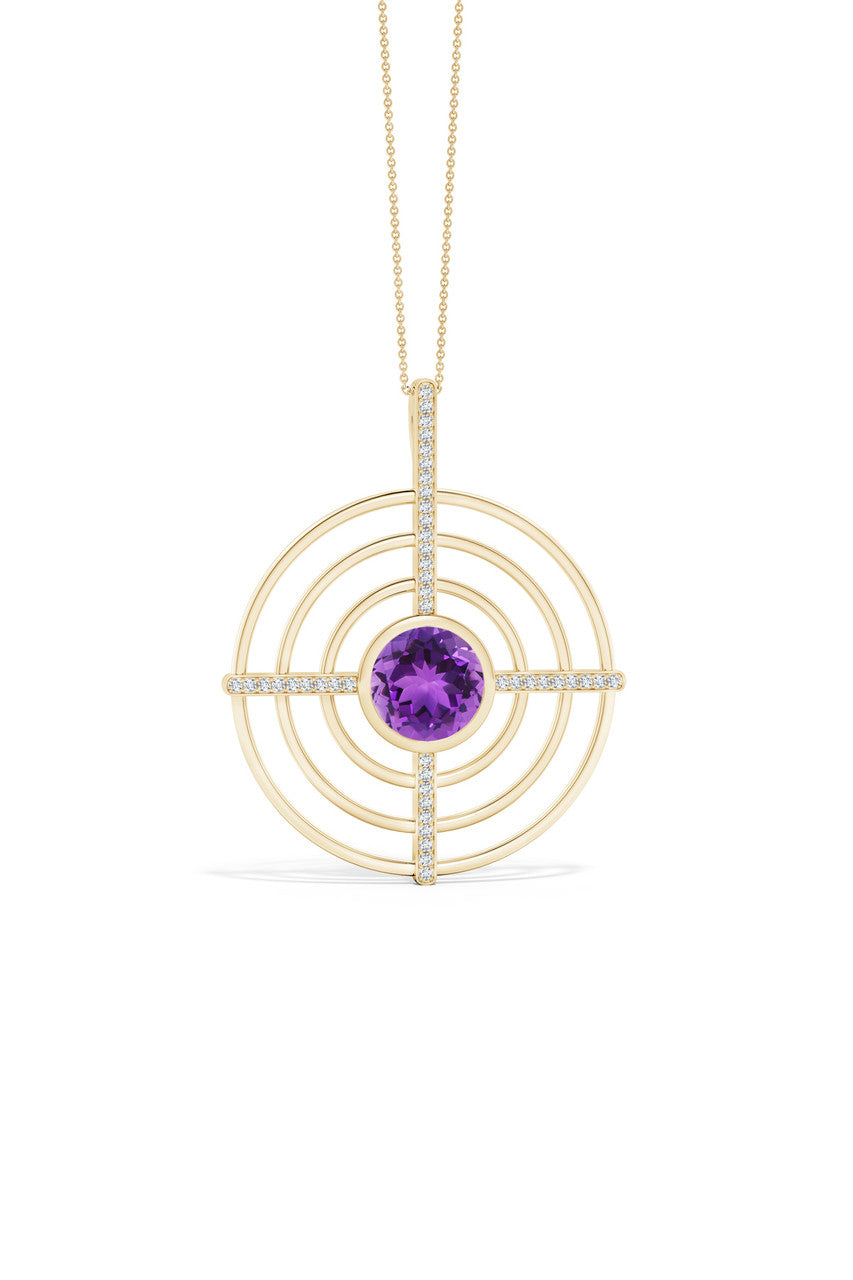 Infinity Concentric Circle 14K Gold and Amethyst Pendant Necklace