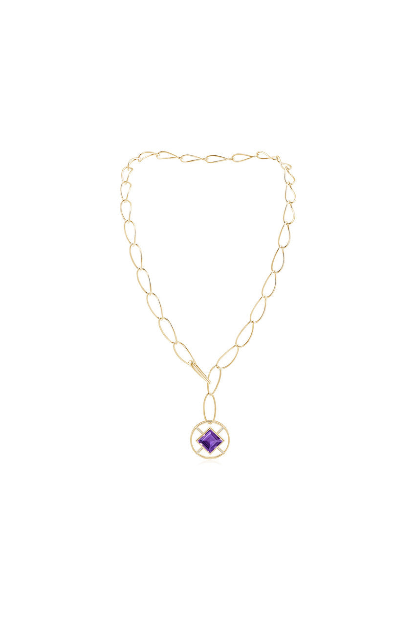 Infinity Concentric Circle 14K Gold and Amethyst Y Necklace