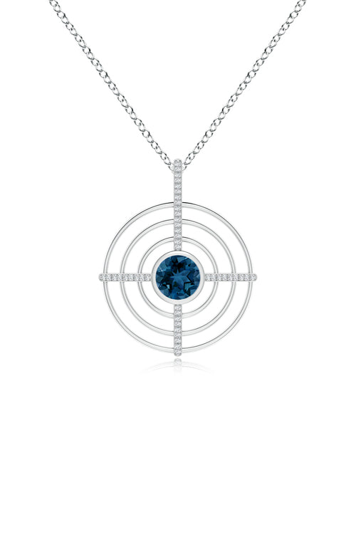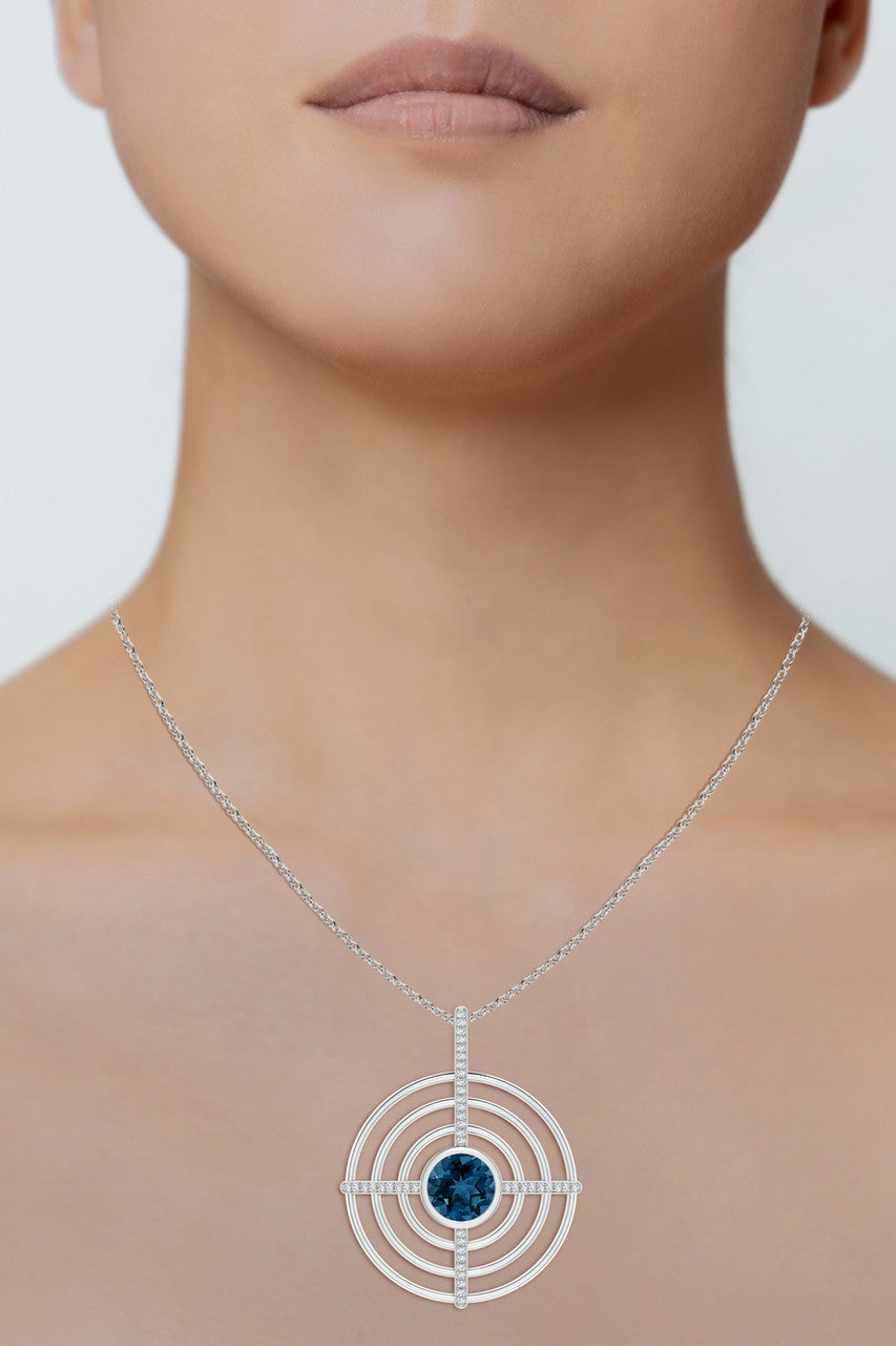 Infinity Concentric Circle 14K Gold and London Blue Topaz Pendant Necklace