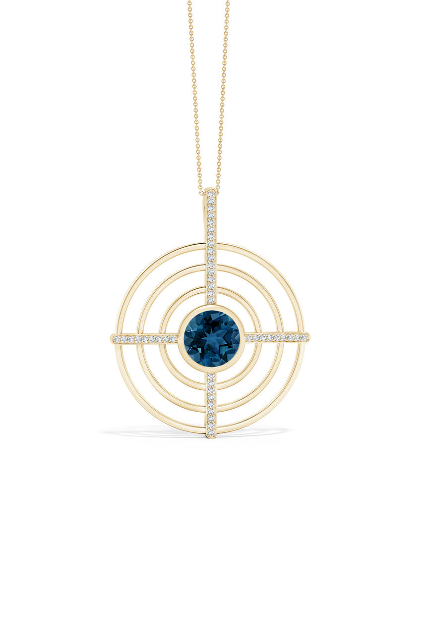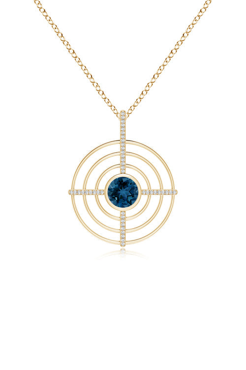 Infinity Concentric Circle 14K Gold and London Blue Topaz Pendant Necklace