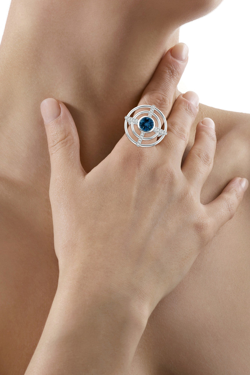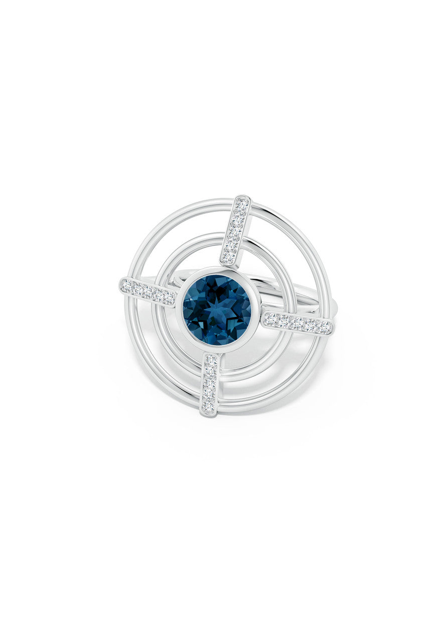 Infinity Concentric Circle 14K Gold and London Blue Topaz Ring