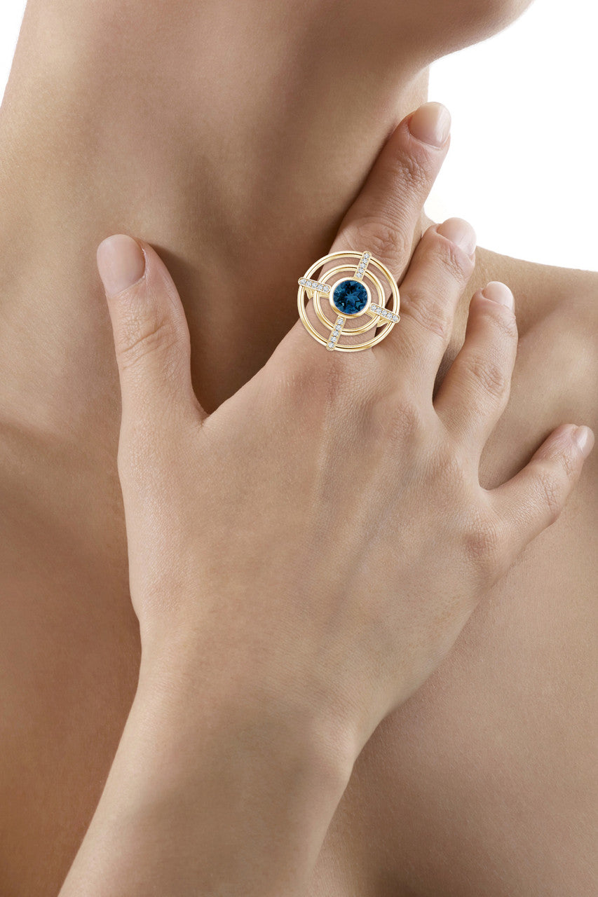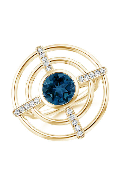 Infinity Concentric Circle 14K Gold and London Blue Topaz Ring
