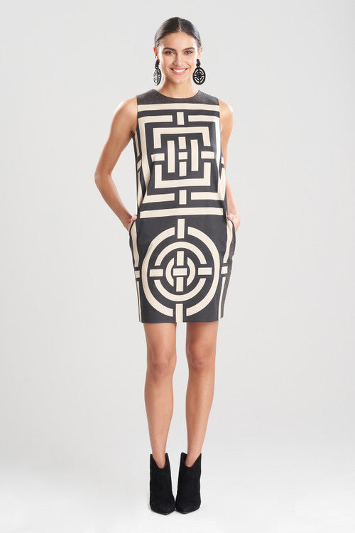 - A tailored sleeveless shift dress that creates a composed silhouette with our iconic "Infinity" logo
