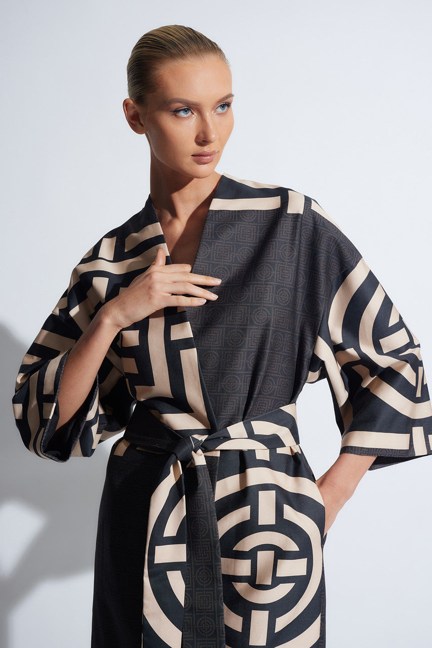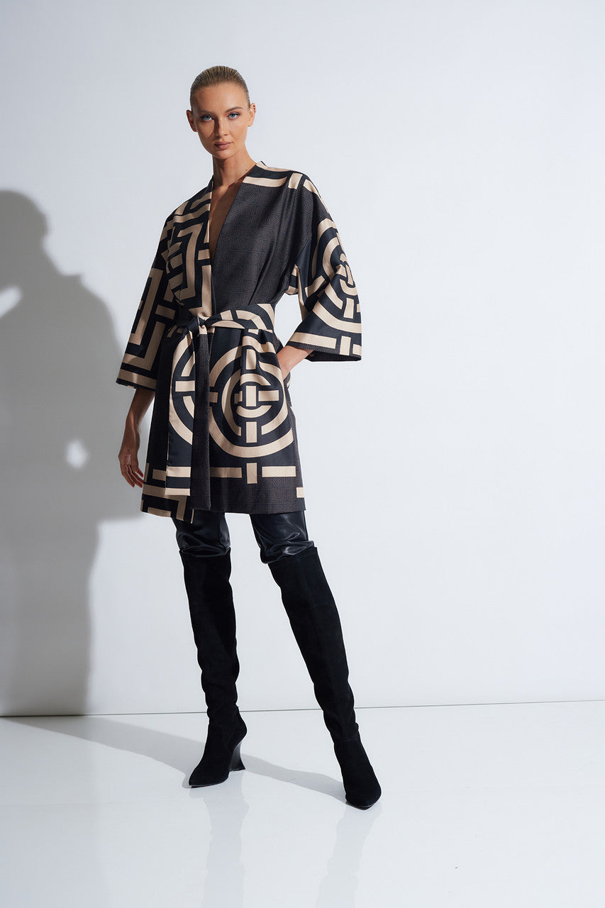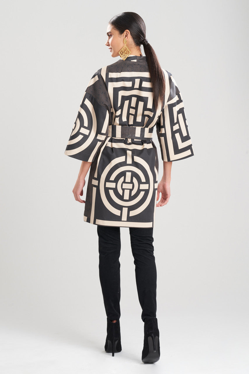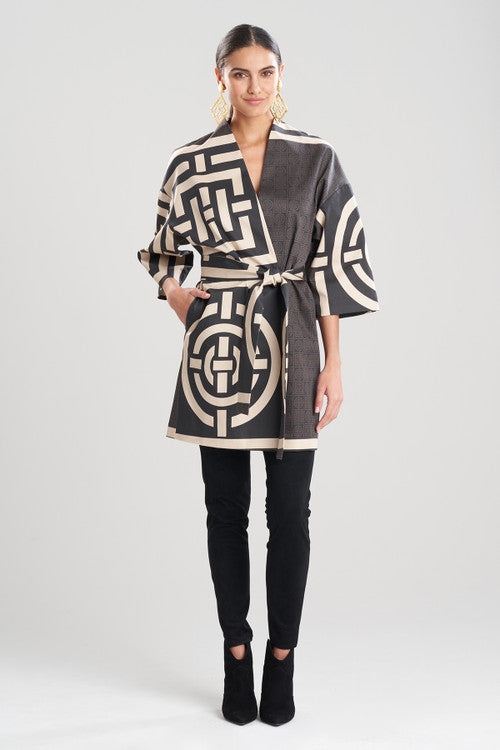 - A structured kimono sleeve topper in cotton sateen with our iconic "Infinity" logo