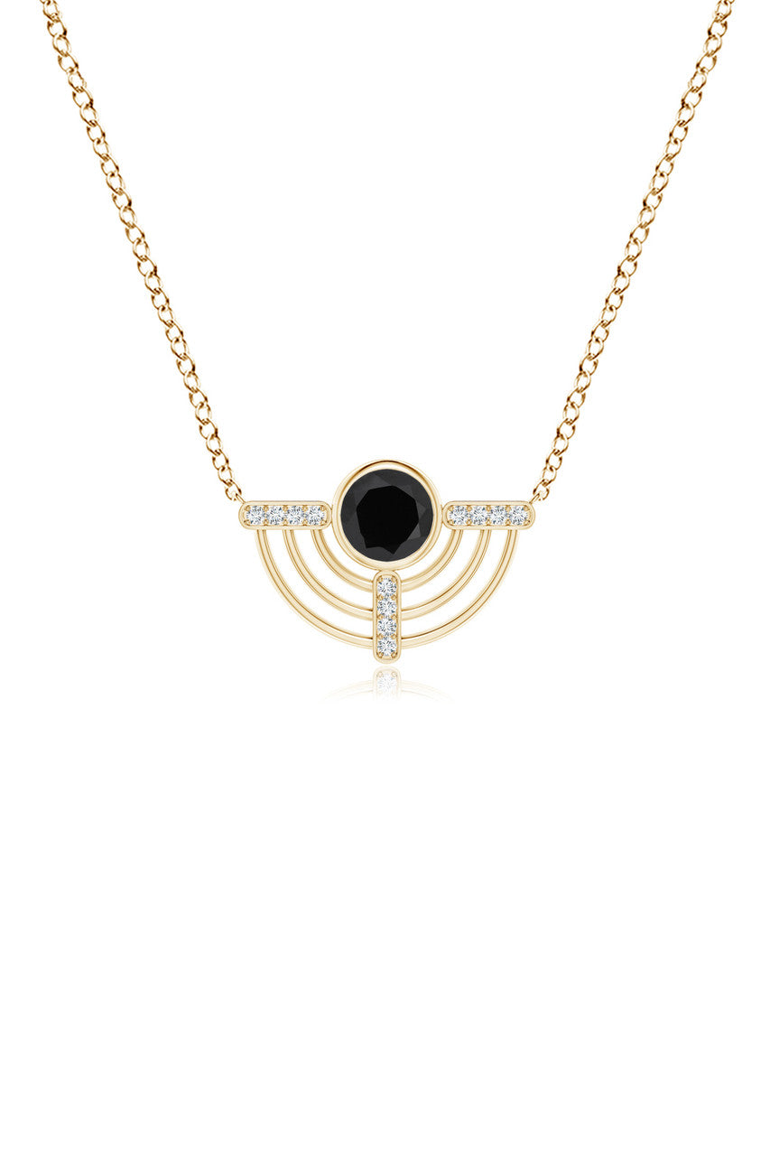 Infinity Half Concentric Circle 14K Gold and Black Onyx Pendant Necklace