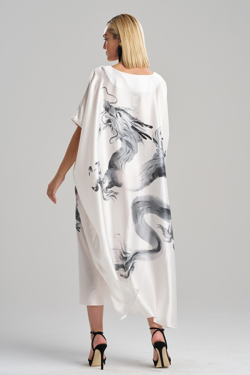 In celebration of the Year of the Dragon, the painterly dragon motif comes to life on silk charmeuse.