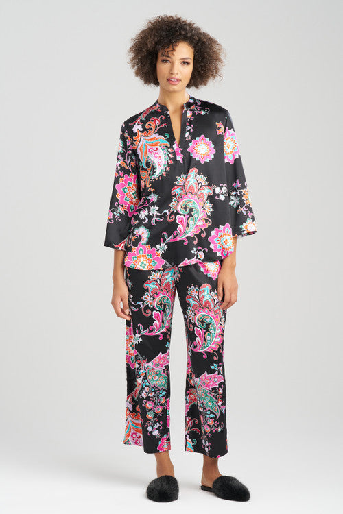 Lounge in the Jaipur print. Printed on luxurious stretch satin.