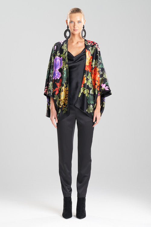 Experience Kairaku Garden. Harmonious florals printed on luxurious silk.