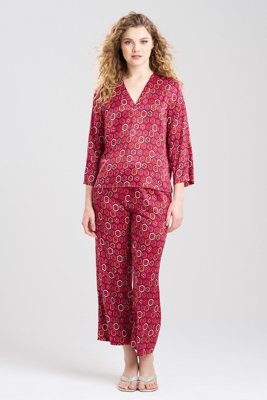 Lounge in the Kano print. Printed on luxurious stretch satin.