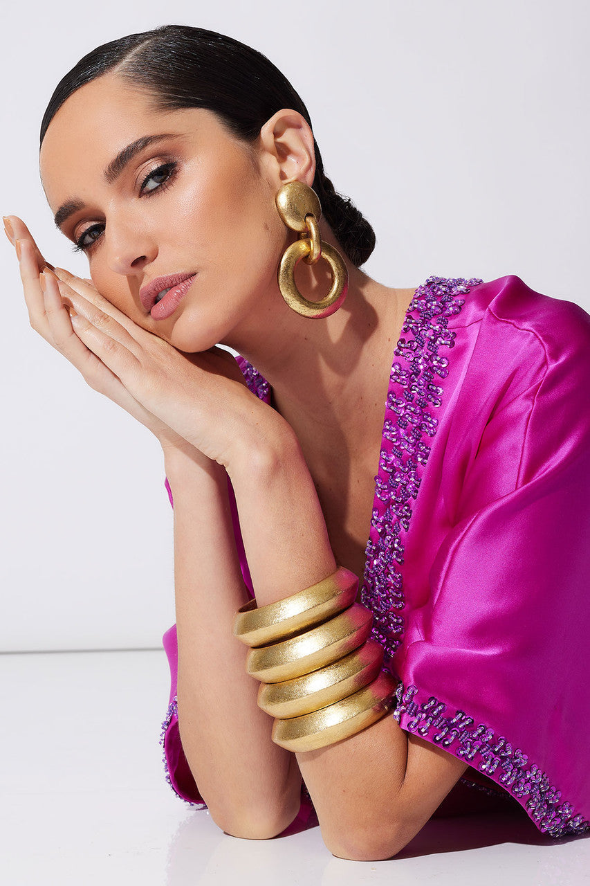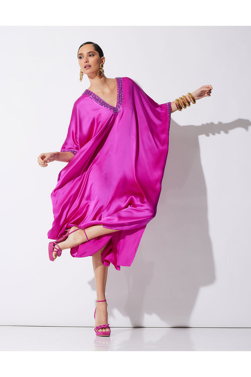 Details & Care For Key Essentials Embellished Cocoon Silk Caftan