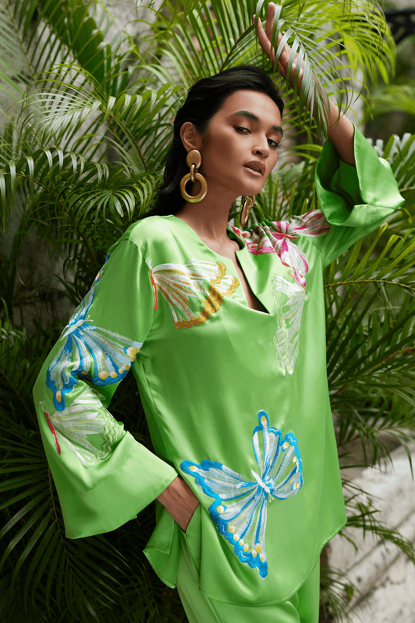 Details & Care For Key Essentials Embroidered Butterfly Silk Tunic Top