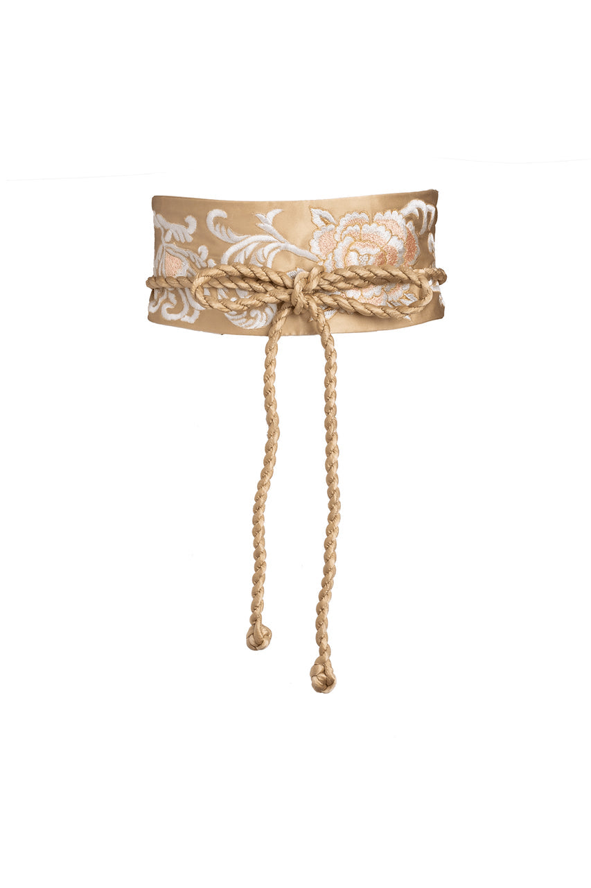 Details & Care For Key Essentials Embroidered Floral Scroll Silk Obi Belt