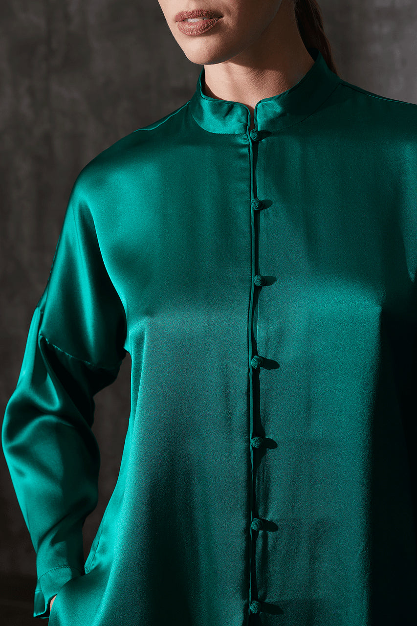 Details & Care For Key Essentials Mandarin Silk Button PJ