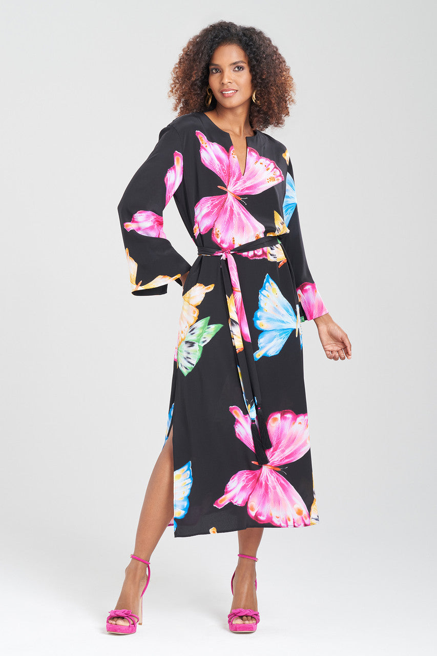 Embrace your femininity with an enchanted arrangement of vibrant butterflies printed on silk crepe de chine.