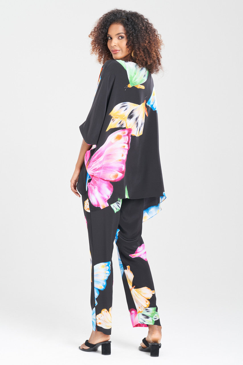 Embrace your femininity with an enchanted arrangement of vibrant butterflies printed on silk crepe de chine.