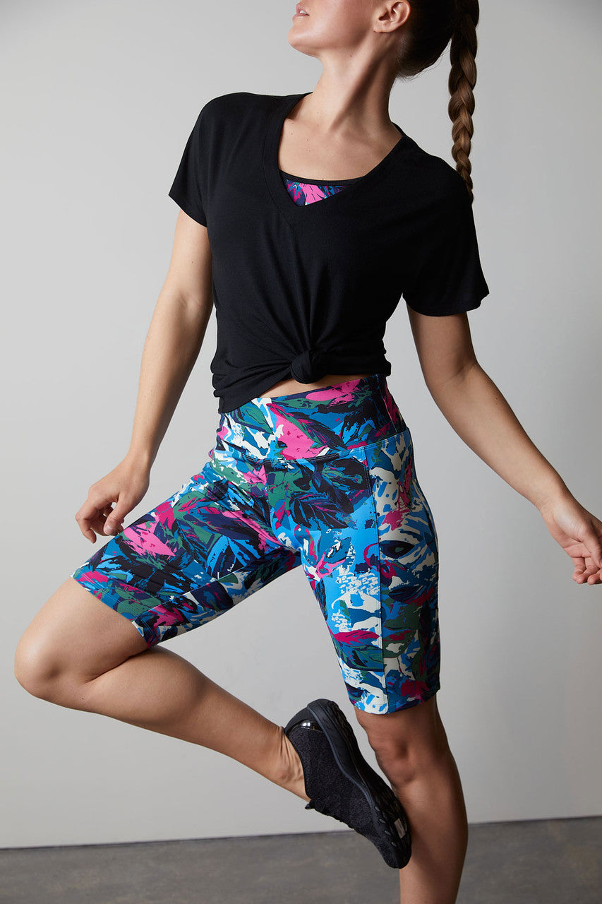 Jersey: a knitted cloth fabric that has great stretch for an active lifestyle. Lightweight yarns create a smooth surface with a slight sheen, that has great drape and flowy fit. Super soft hand feel.