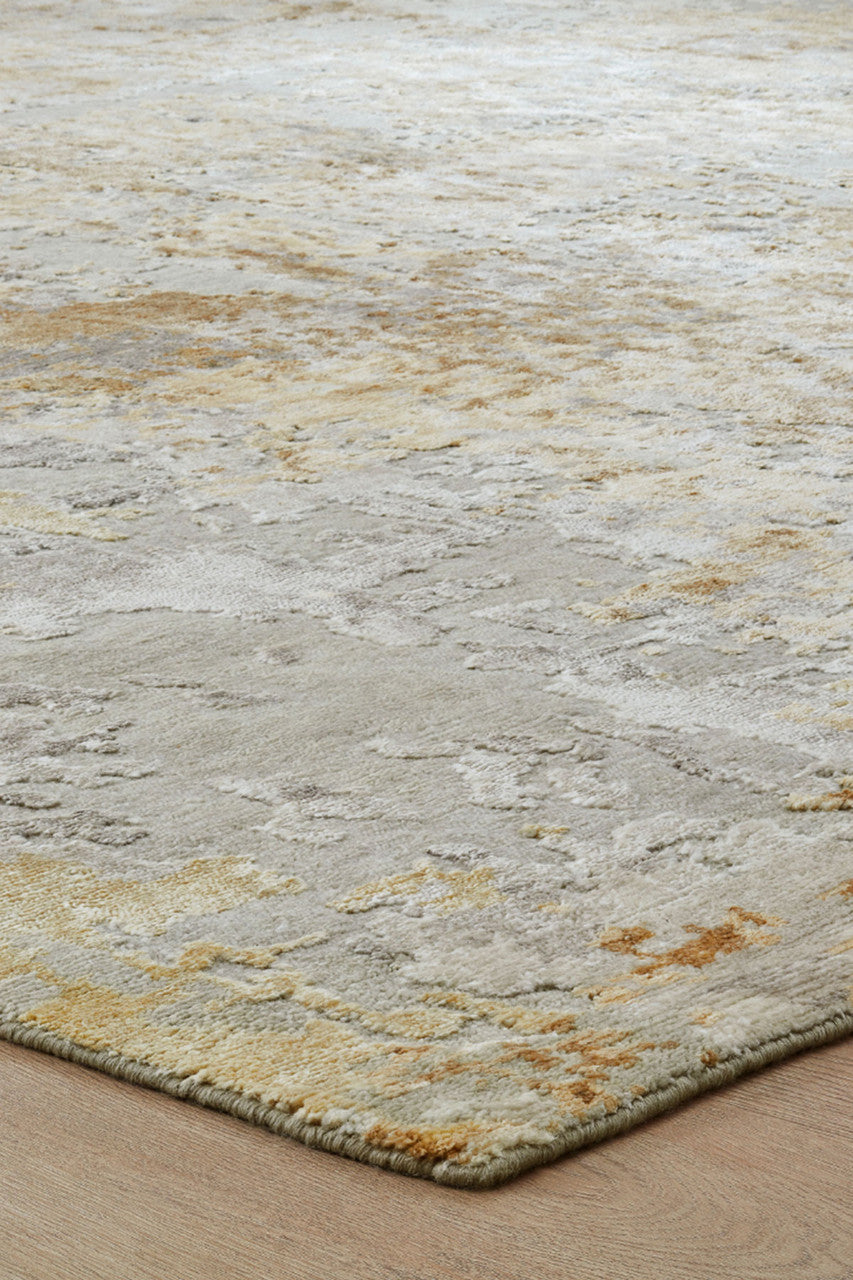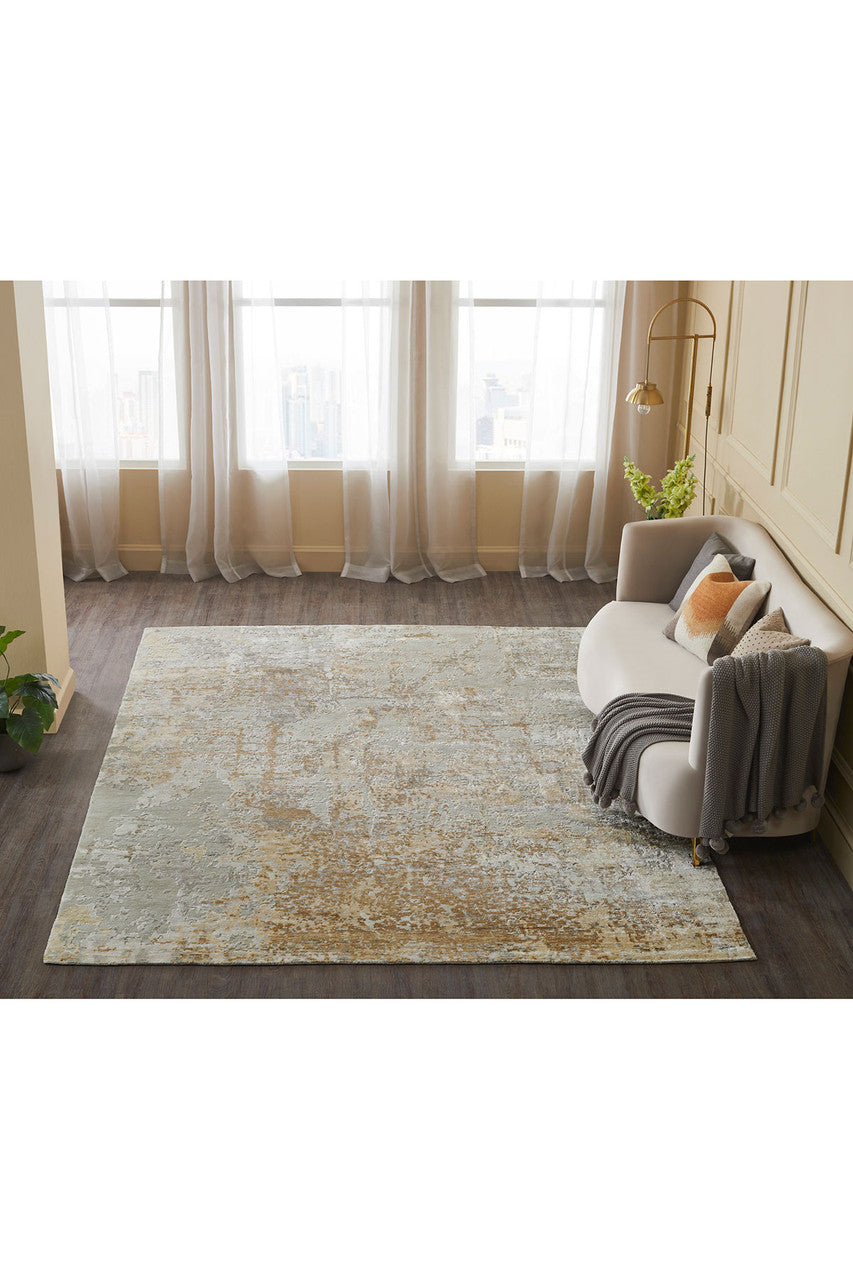 The Lhasa collection, featuring Josie Natori's abstract prints on subdued color palettes, brings art into life. Shapes in the Bamboo rug hint at the flowering evergreen.