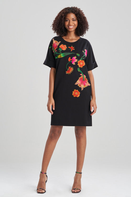 Details & Care For Light Weight Ponte Floral Applique T-Shirt Dress