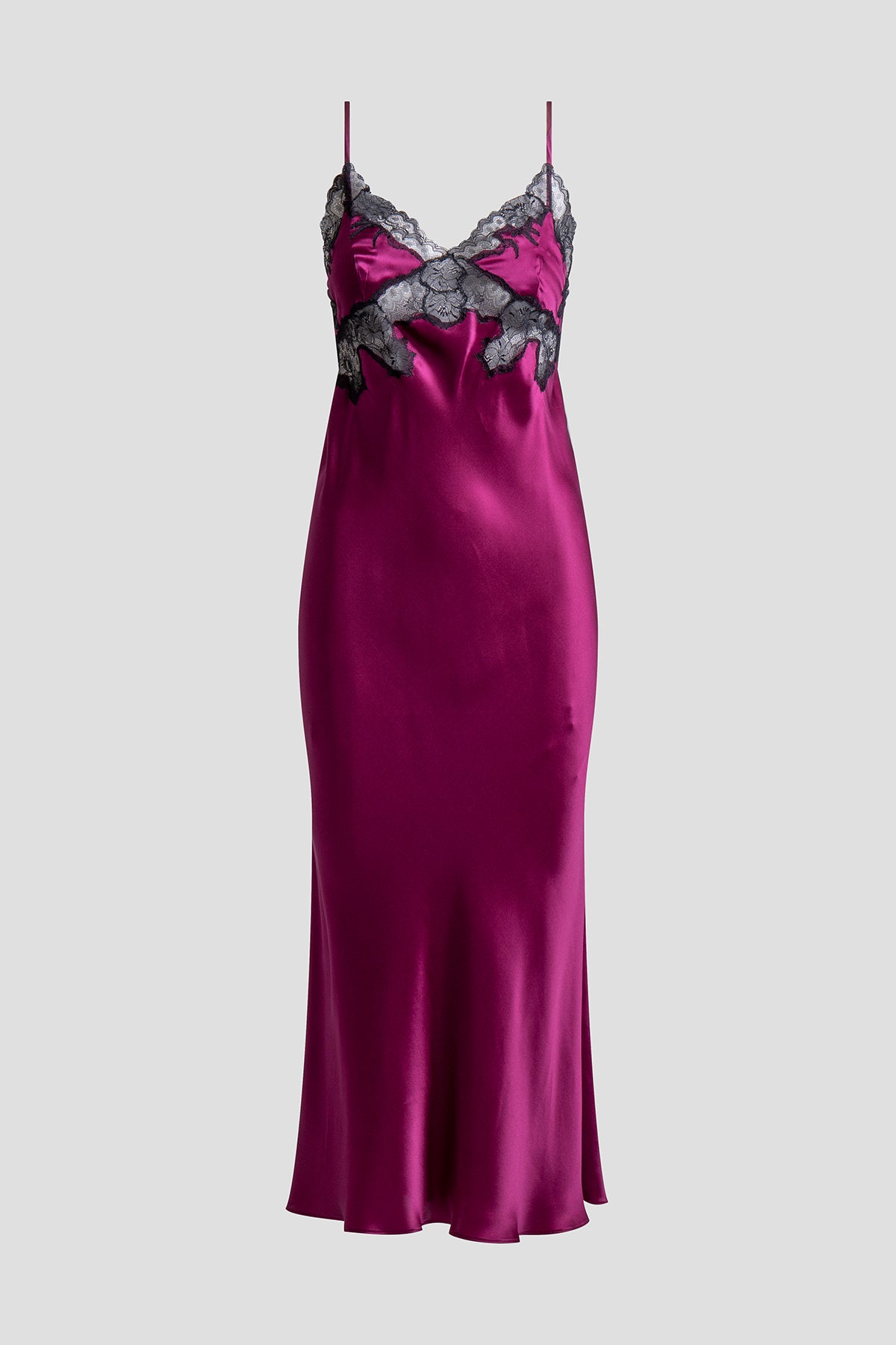 The iconic Lolita collection combines silk charmeuse and intricate Chantilly lace appliques.