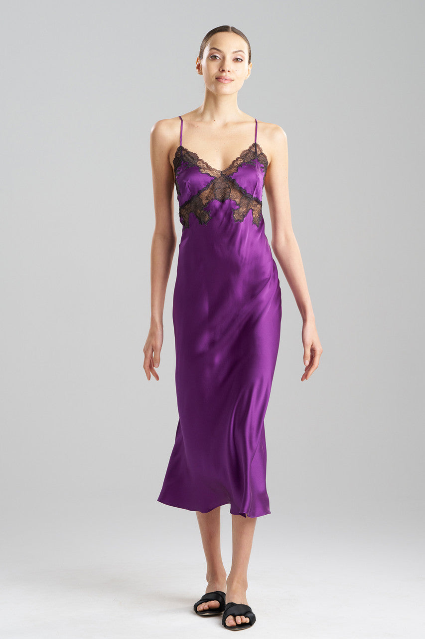 The iconic Lolita collection combines silk charmeuse and intricate Chantilly lace appliques.
