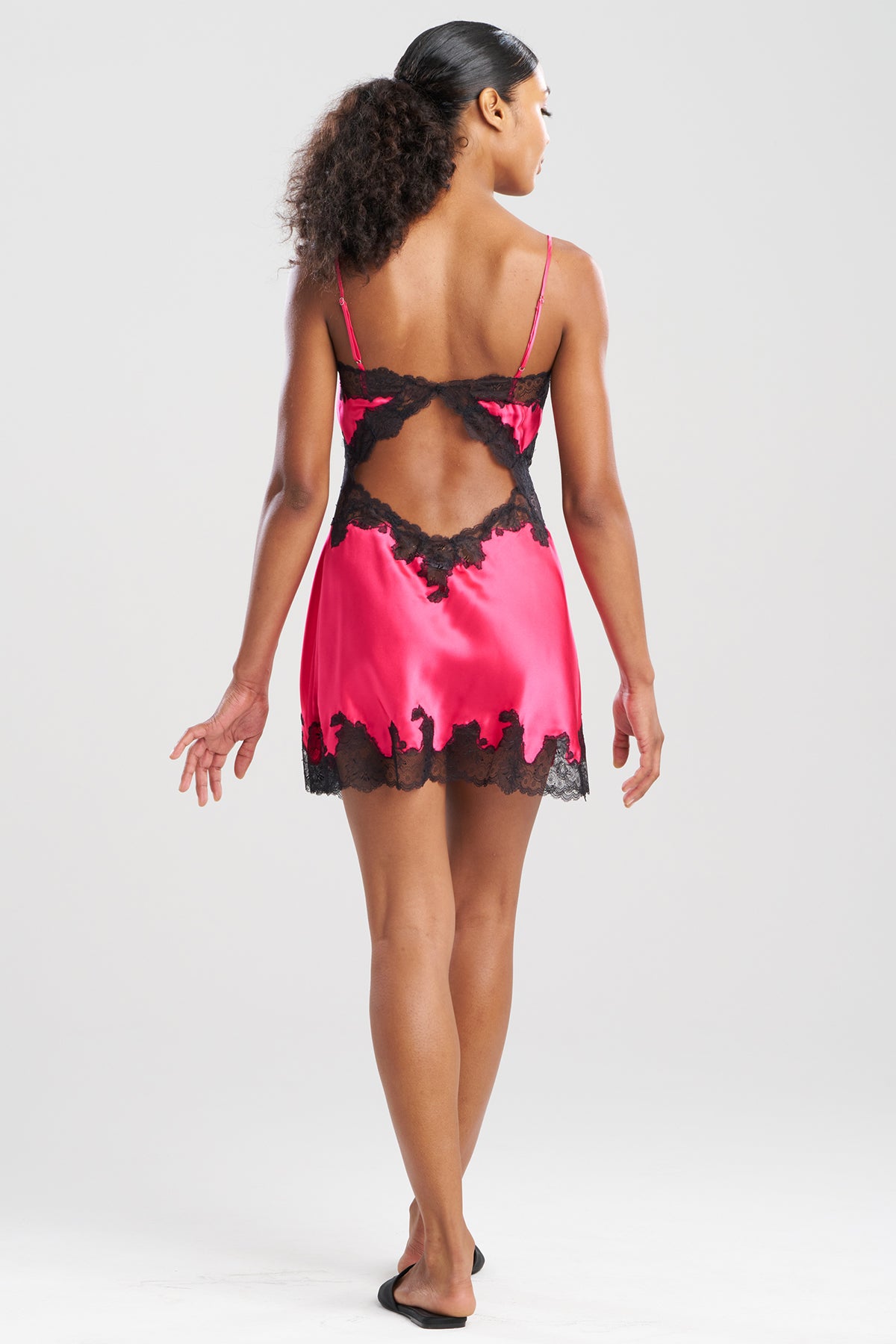 The iconic Lolita collection combines silk charmeuse and intricate Chantilly lace appliques.