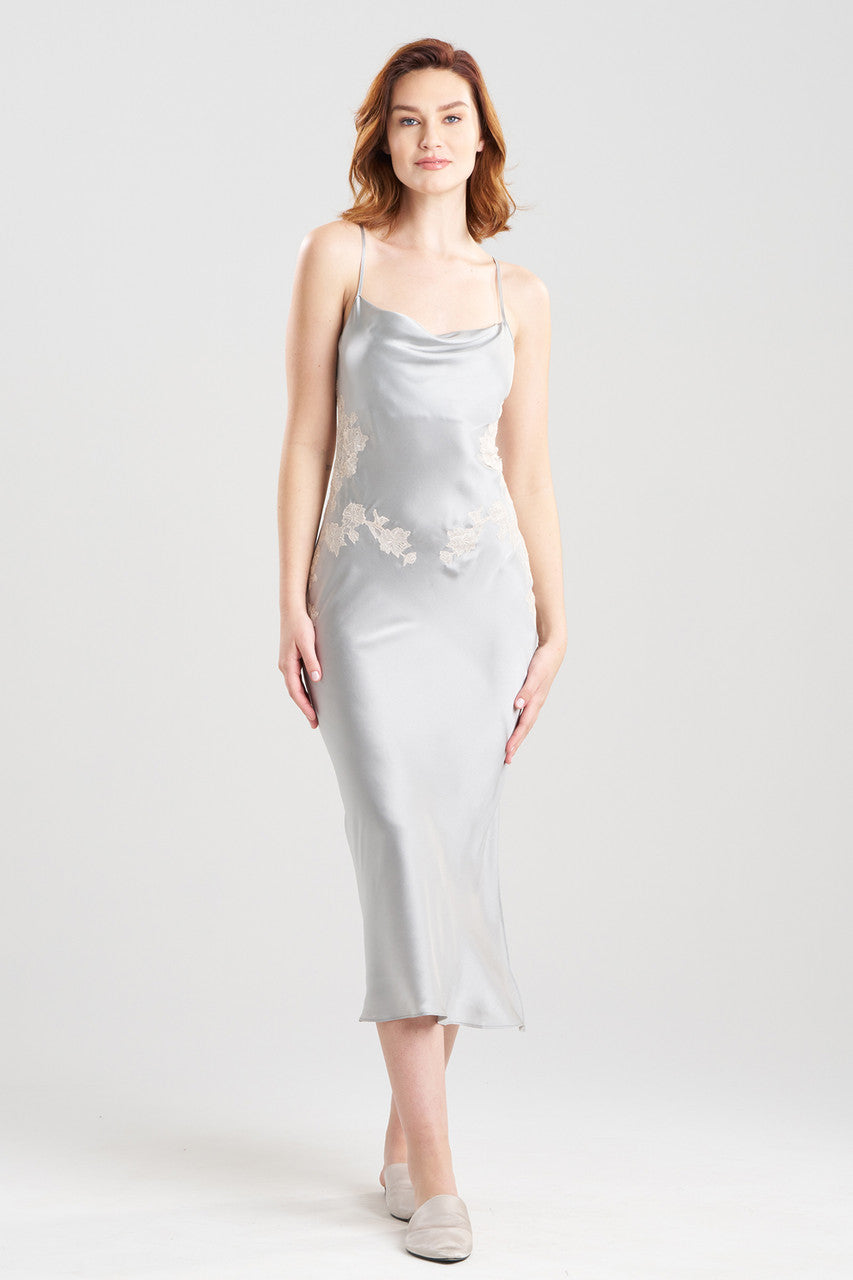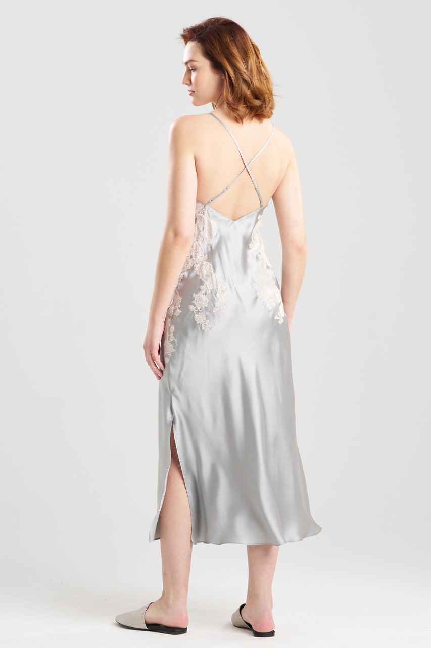 The iconic Lolita collection combines silk charmeuse and intricate Chantilly lace appliques.