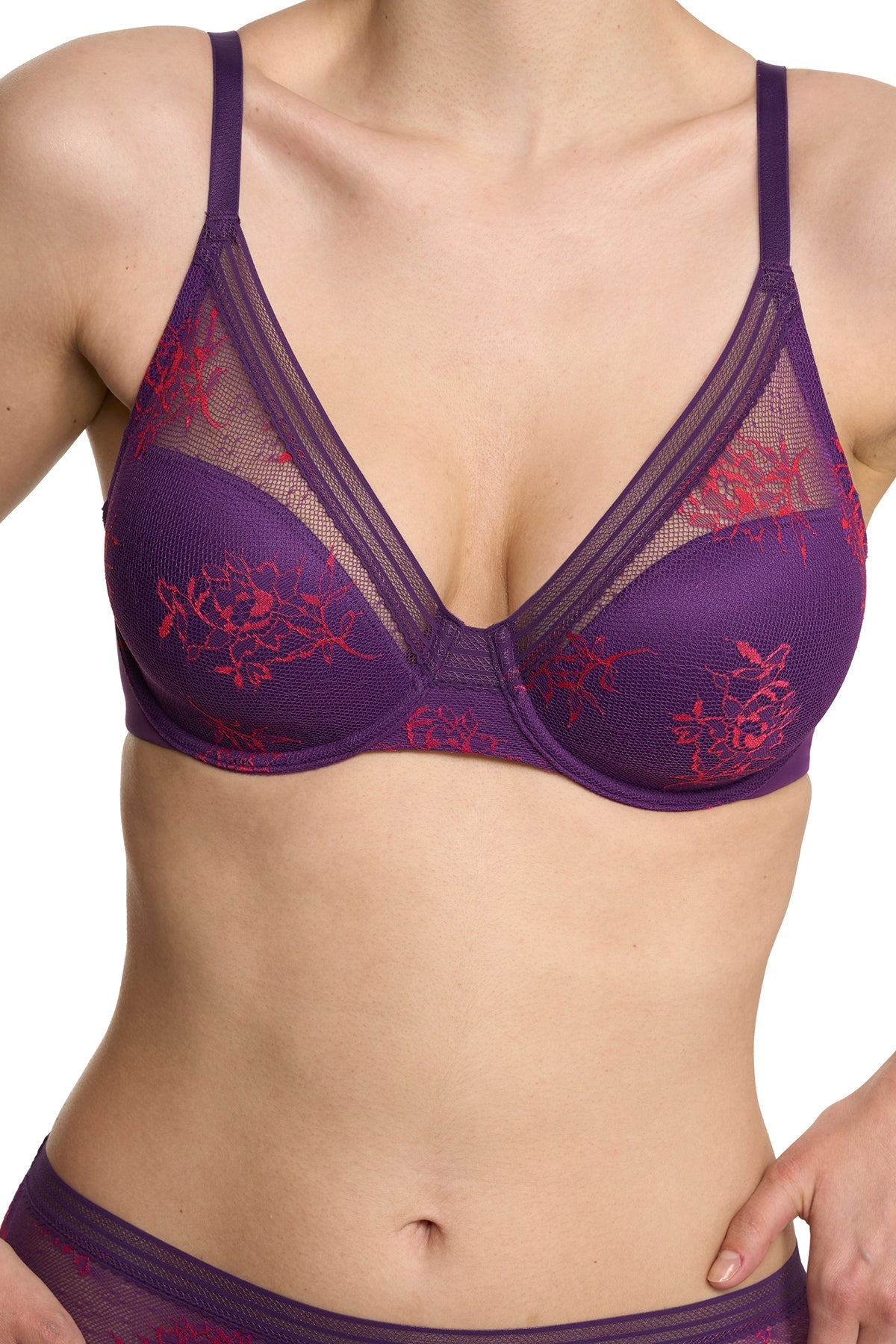 A luxurious and feminine take on Natori's signature plunge silhouette. Floral lace cups, made from innovative LYCRA® ADAPTIV yarns, offer a perfect balance of softness and stretch, ensuring a flattering fit that adapts to your body. Wide, smooth backs complete the design for a T-shirt bra that offers all-day comfort.