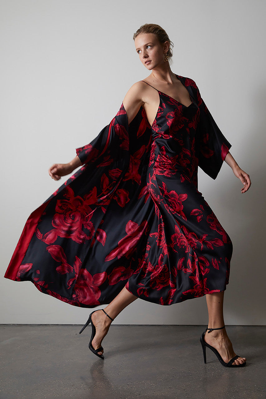 Flirty florals meet silky charmeuse.