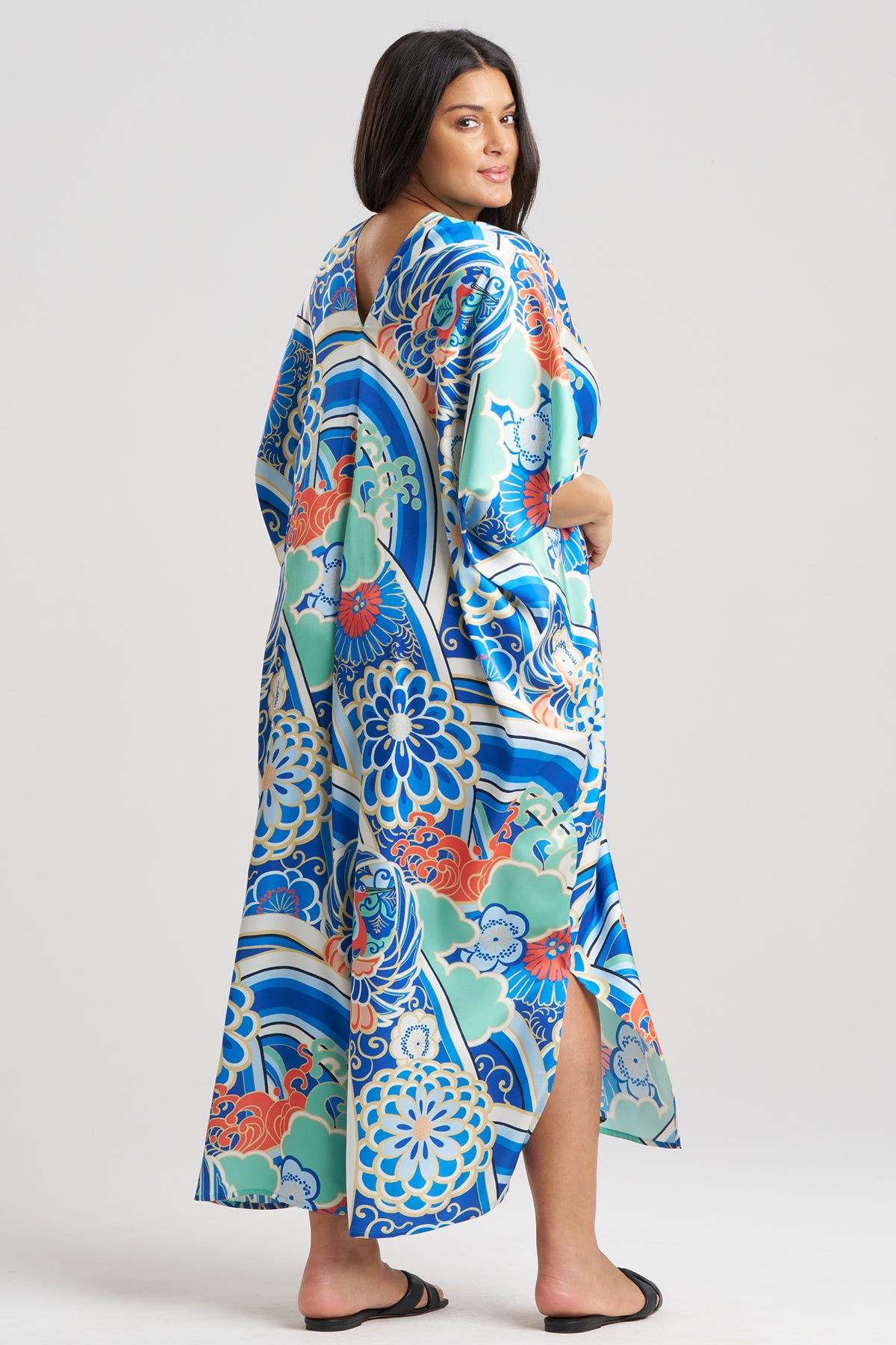 The classic Medallion print, revitalized. A versatile caftan to wear inside or out.