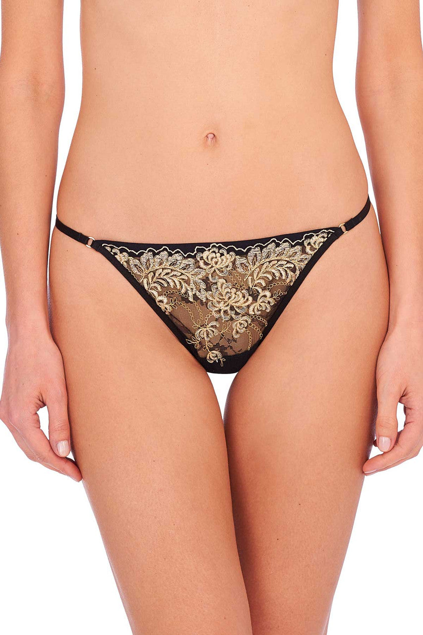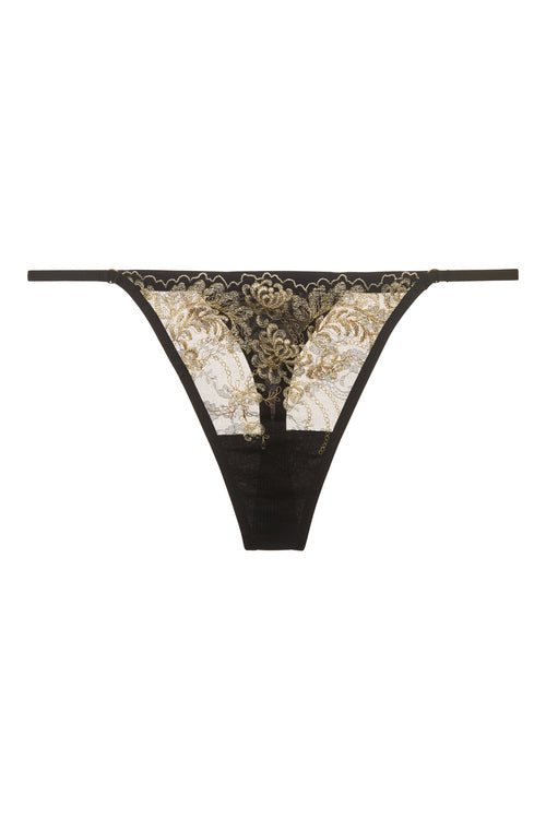 The memoir thong offers European sensibility with a modern edge. Dramatic floral embroidery on a classic lace ground offers a timeless yet unique look that goes beyond the holidays.