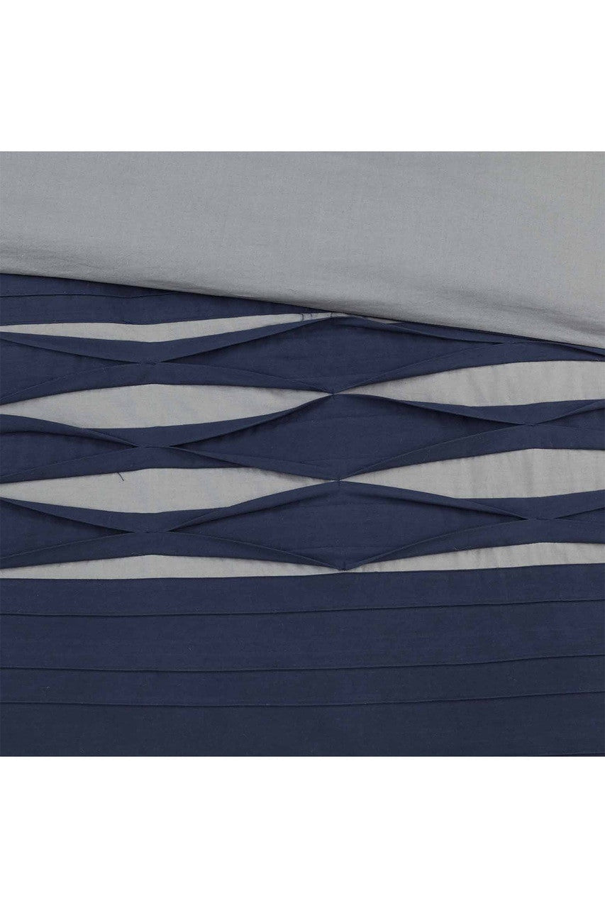 Comforter and Sham Face: 250 SPI 100% cotton sateen pieced with pintuck / Comforter and Sham Back: 180-thread count 100% cotton solid / Filling: 100% polyester