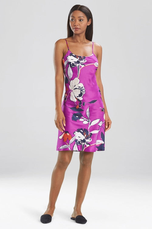 Bold rich colors paired with a classic floral print give this slip a flirty feel.