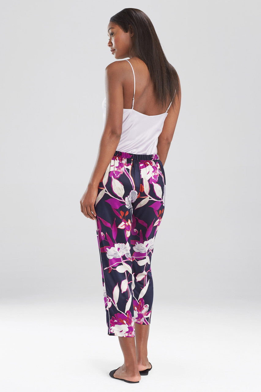 Bold rich colors paired with a classic floral print give this pant a flirty feel.