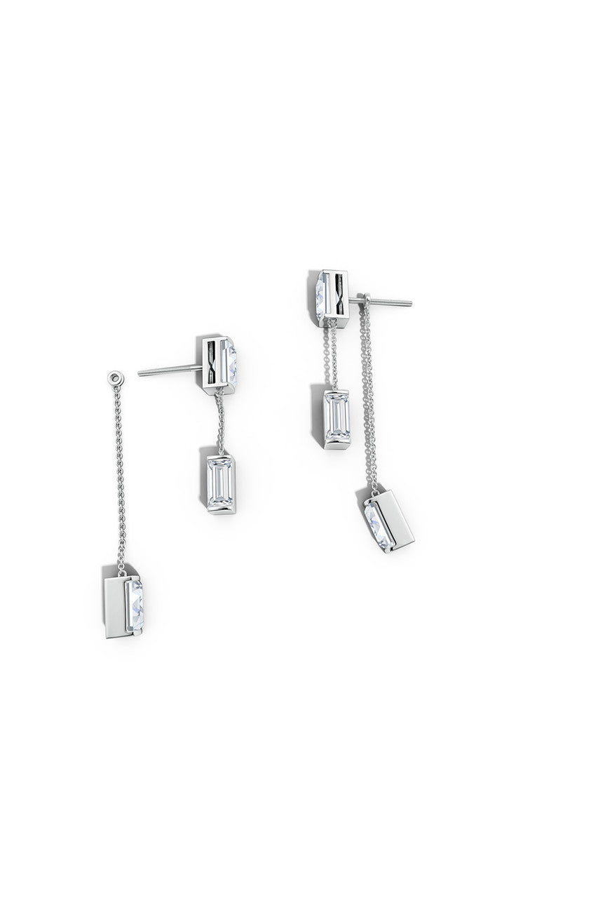 Details & Care For Orient Express Lab-Grown 14K Gold Baguette & Diamond Front-Back Chain Earrings