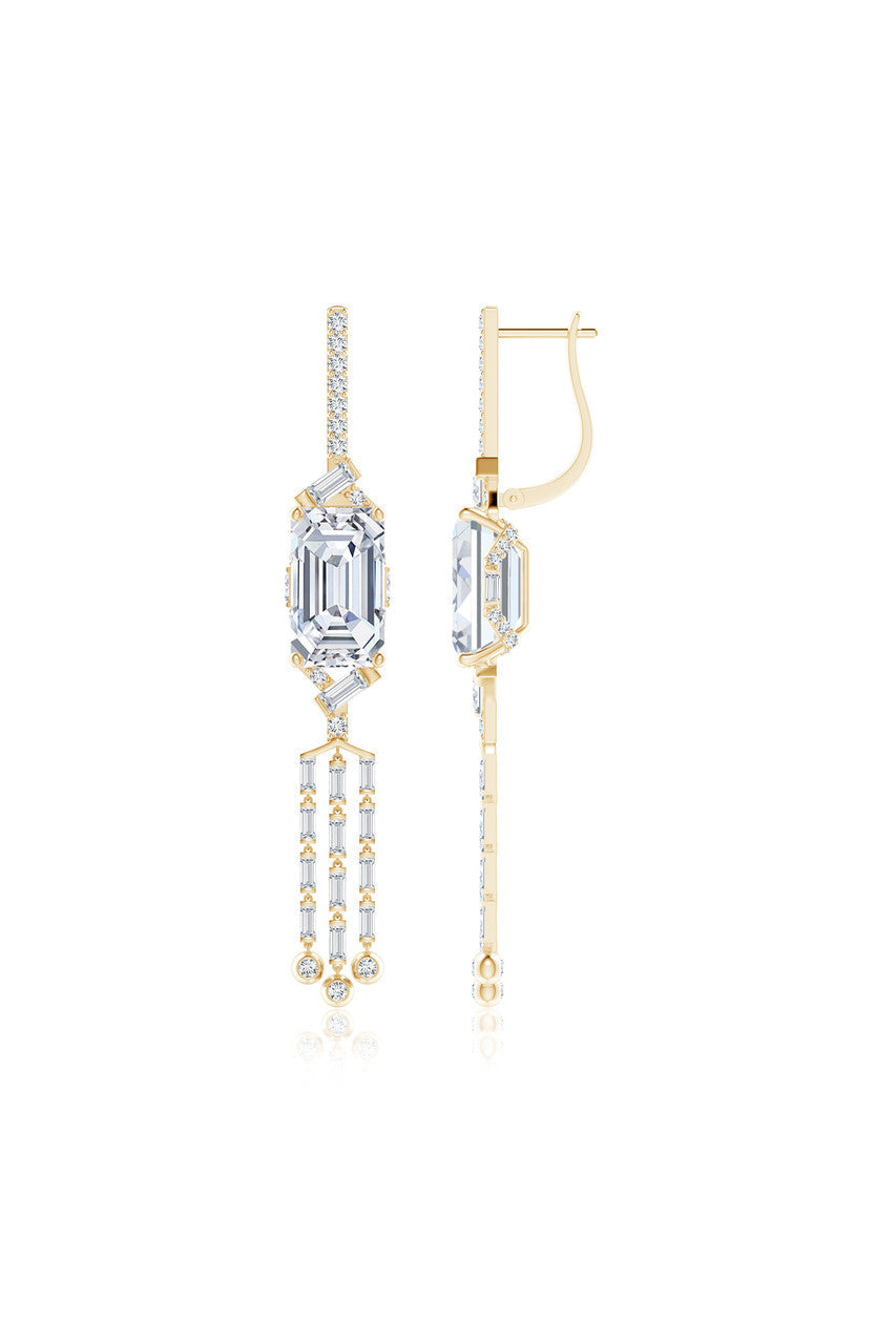 Details & Care For Orient Express Lab-Grown 14K Gold Emerald Cut & Baguette Diamond Tassel Drop Earrings