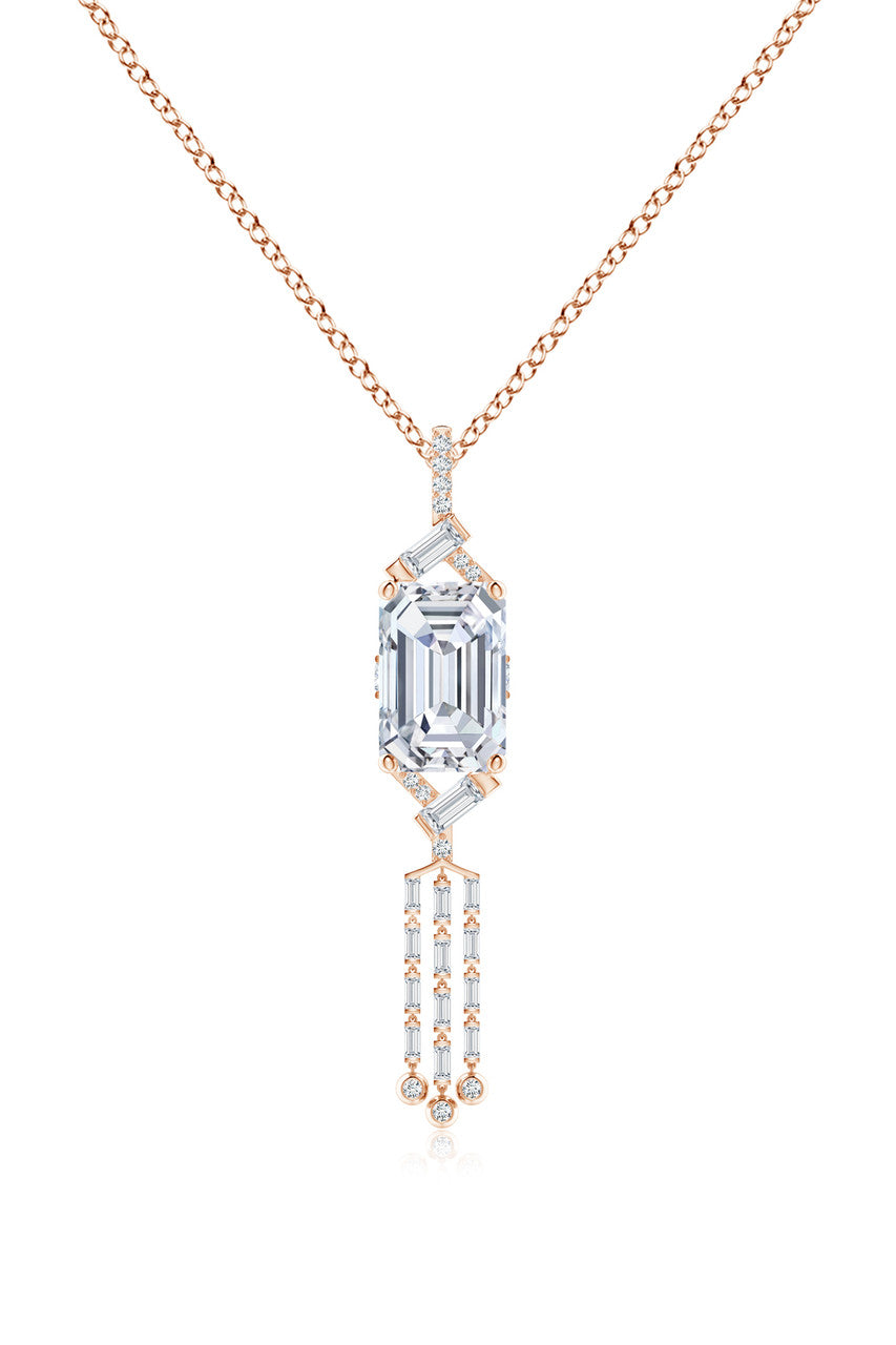 Orient Express Lab-Grown 14K Gold Emerald Cut & Baguette Diamond Tassel Drop Pendant Necklace