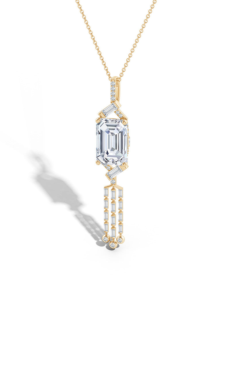 Details & Care For Orient Express Lab-Grown 14K Gold Emerald Cut & Baguette Diamond Tassel Drop Pendant Necklace